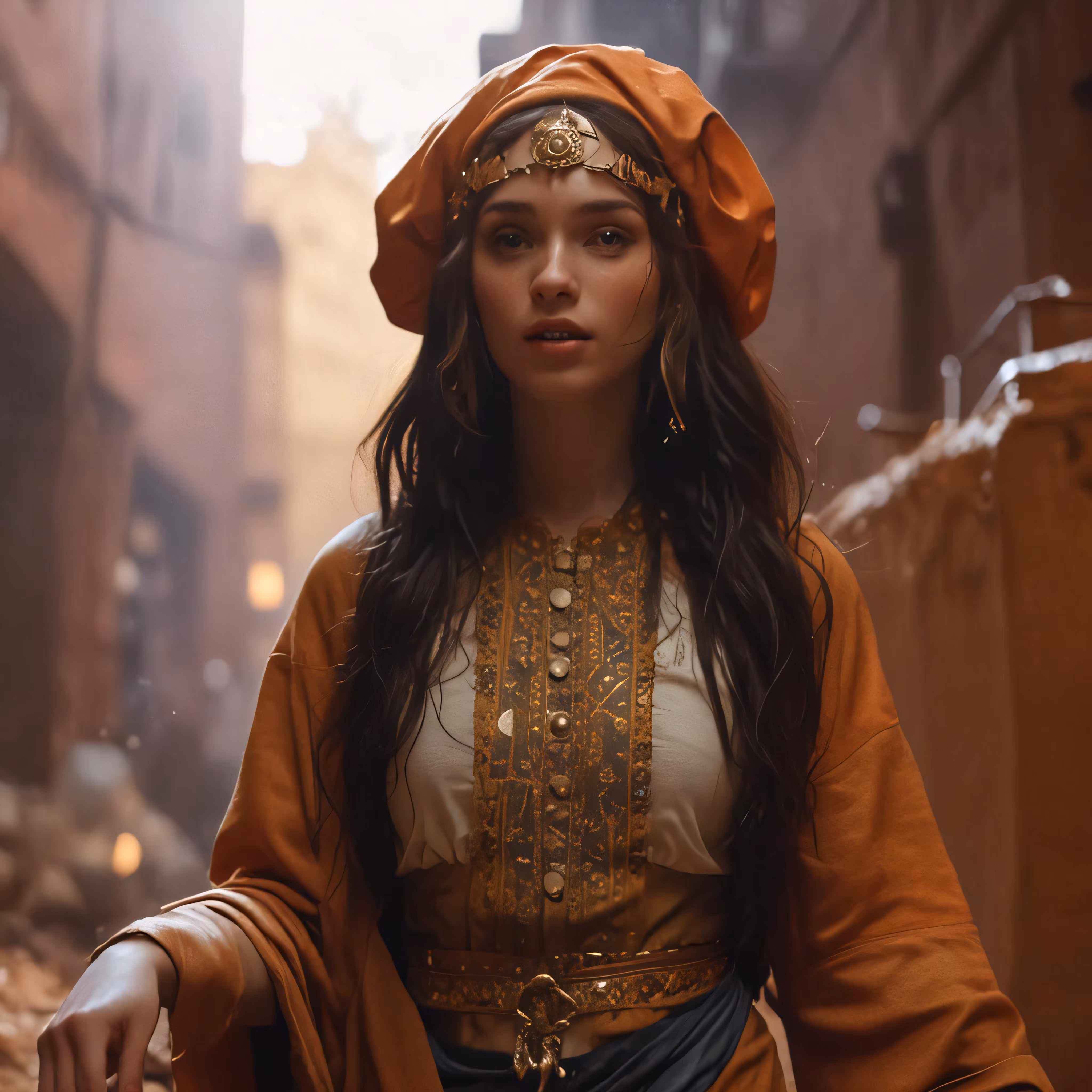 High resolution picture, free to use, a woman is dressed in medieval style clothing