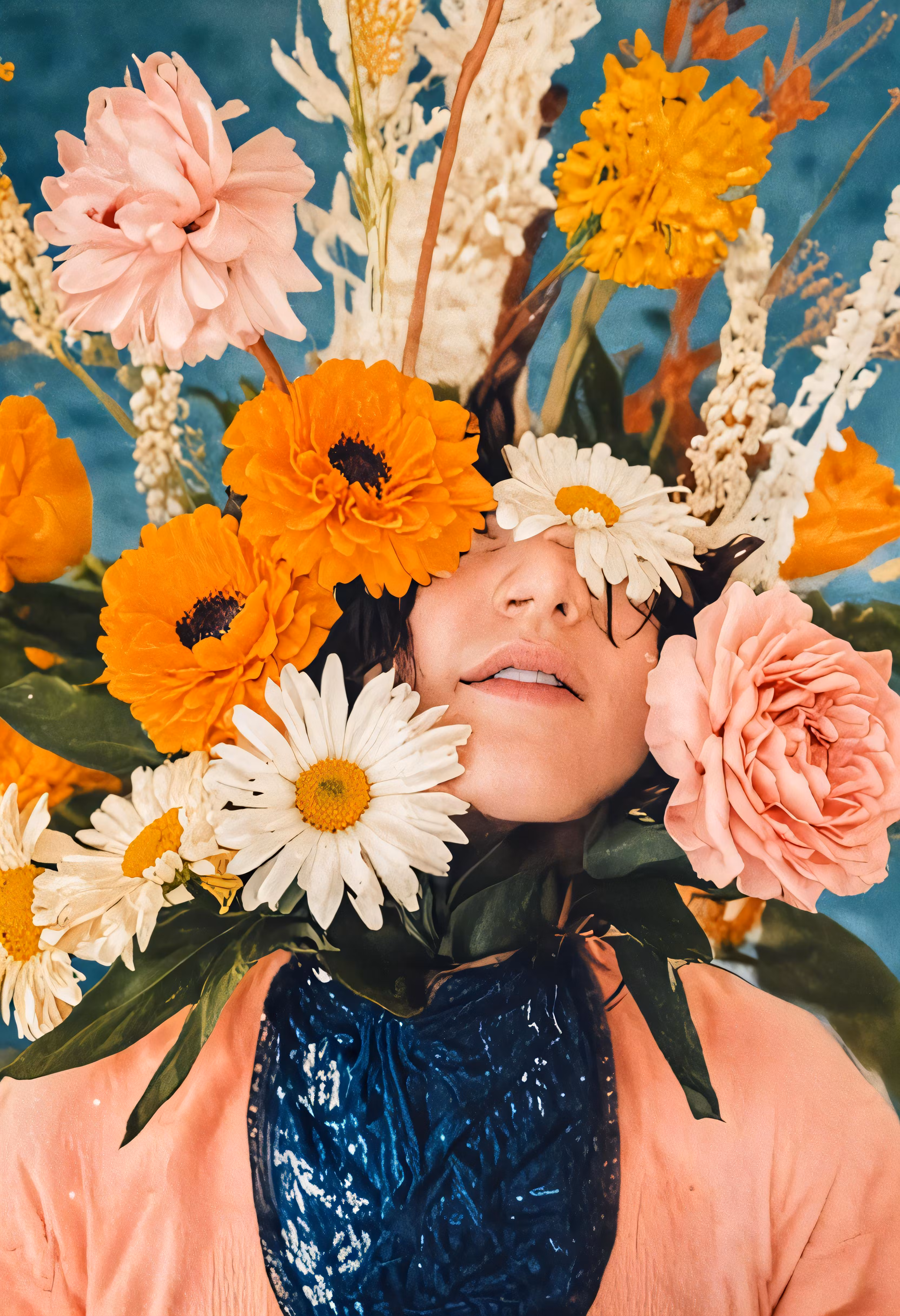 High resolution picture, free to use, a woman is holding a bouquet of flowers