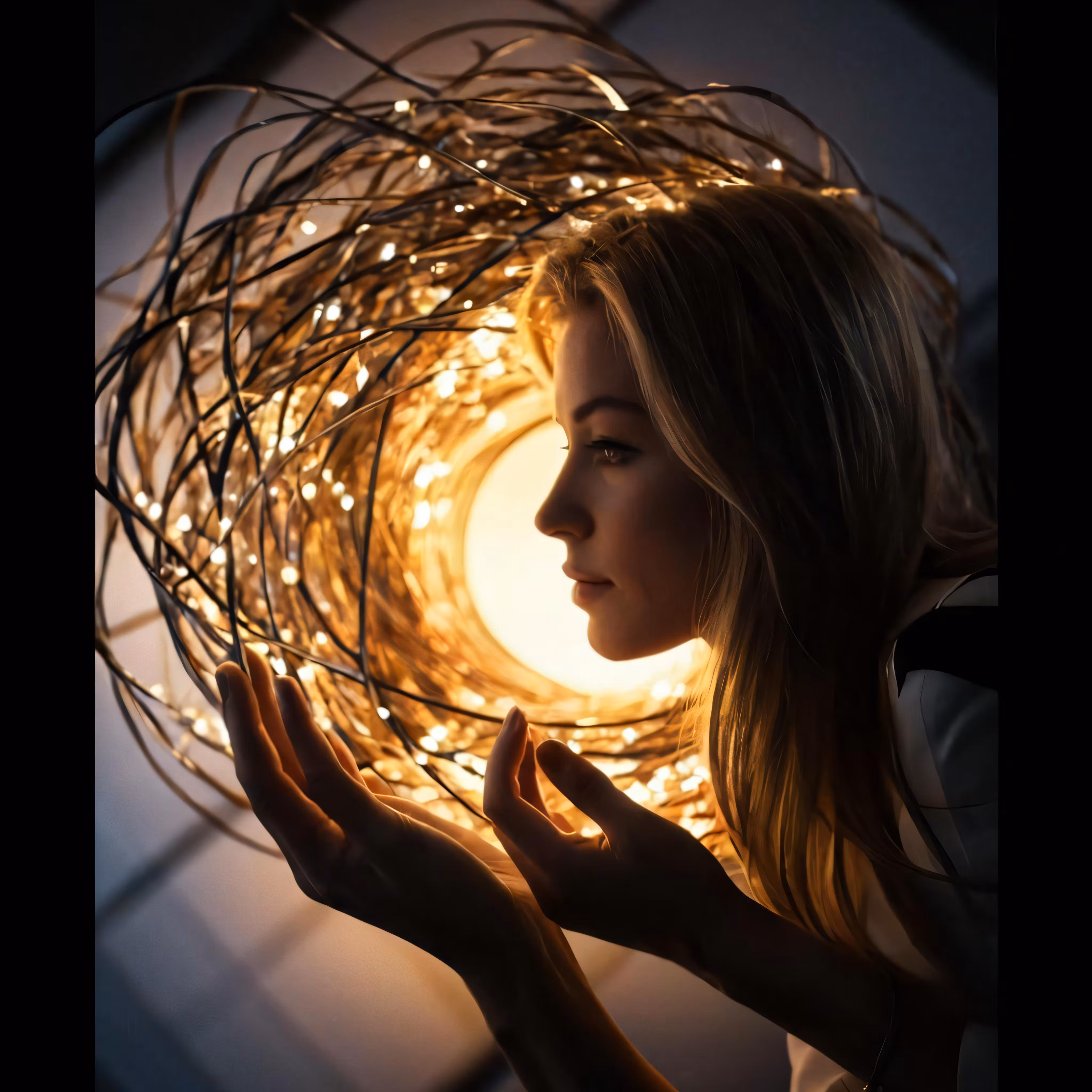 High resolution picture, free to use, a woman is holding her hand up towards the light