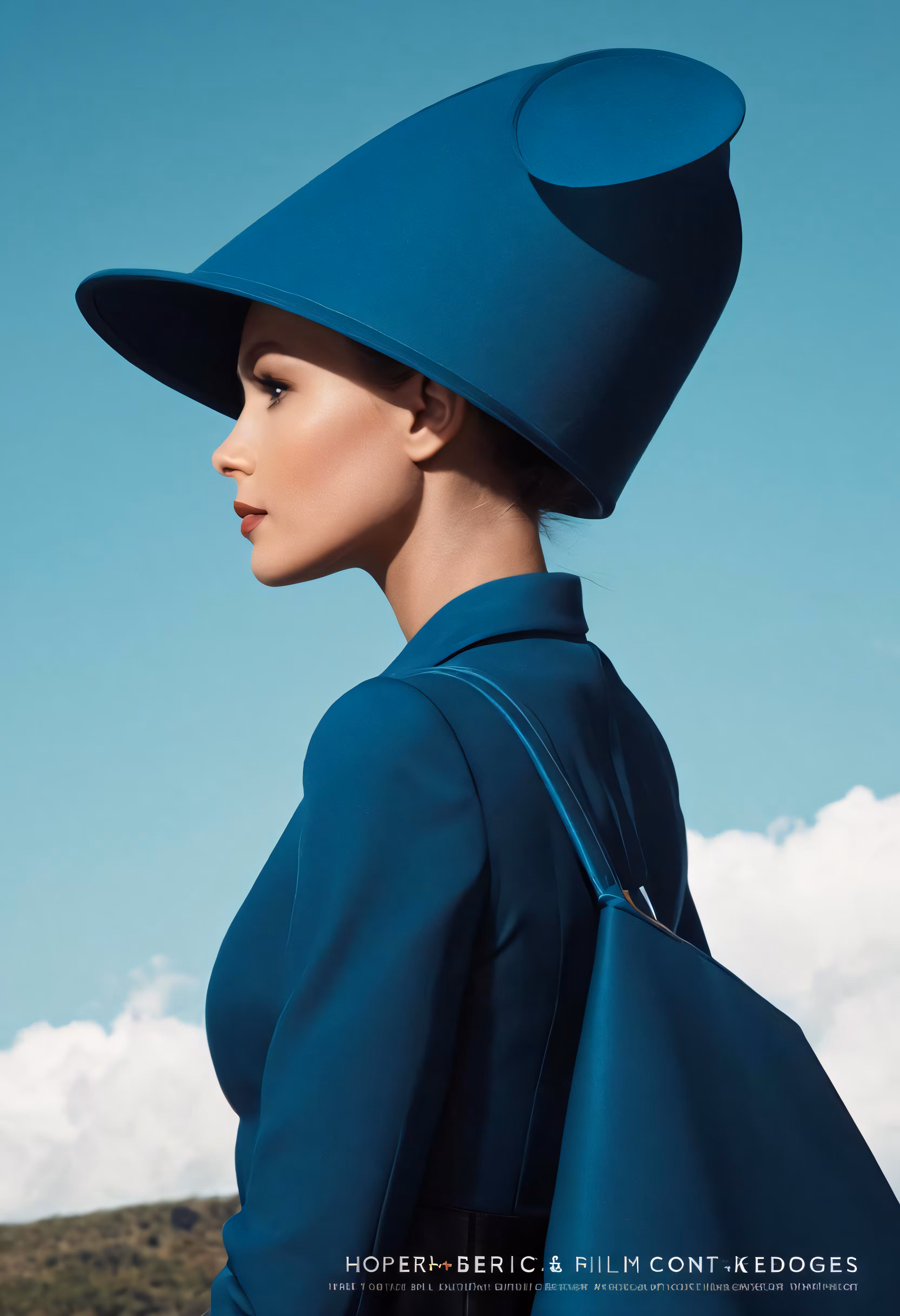 High resolution picture, free to use, a woman is shown wearing a blue hat
