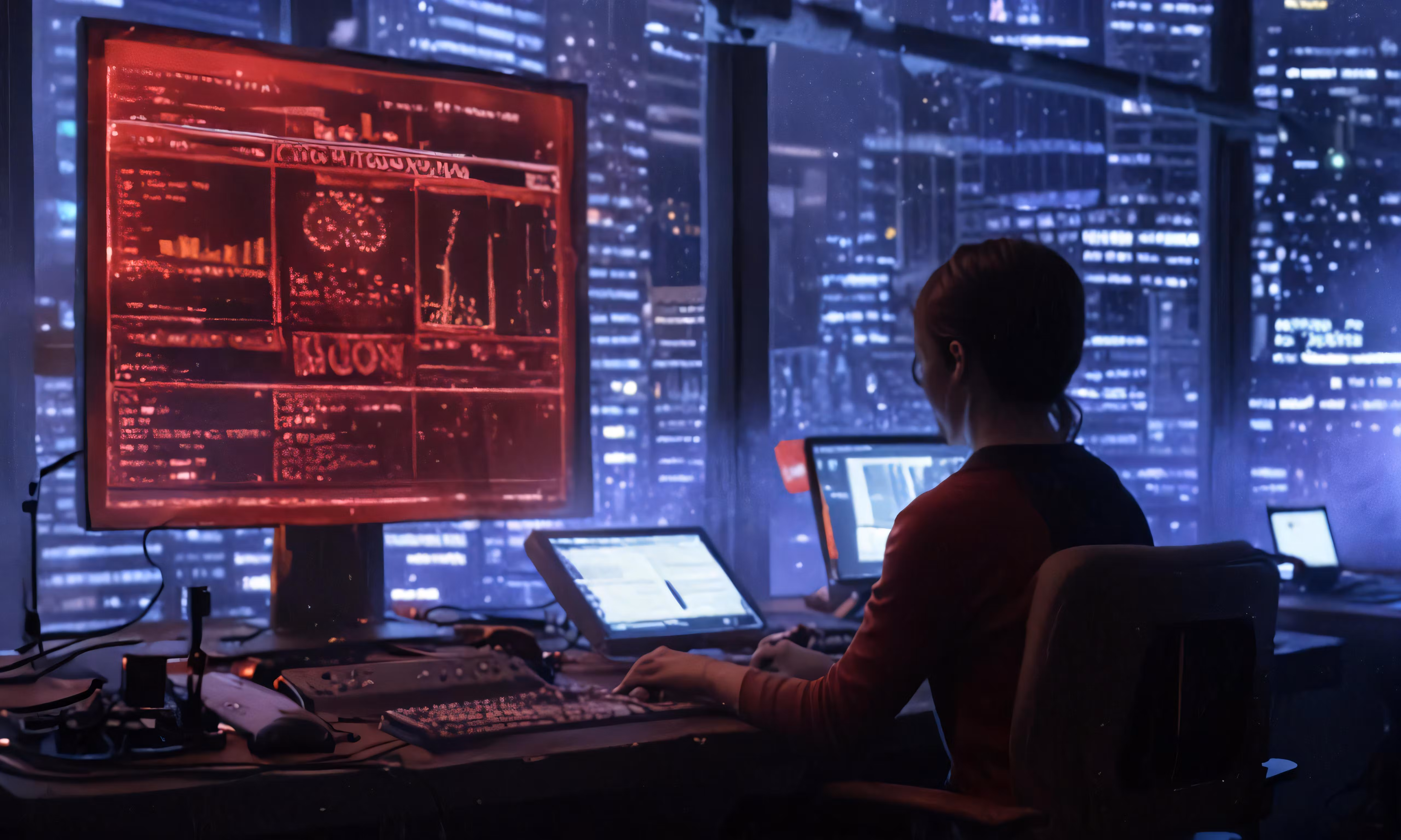 High resolution picture, free to use, a woman is sitting in front of two computers