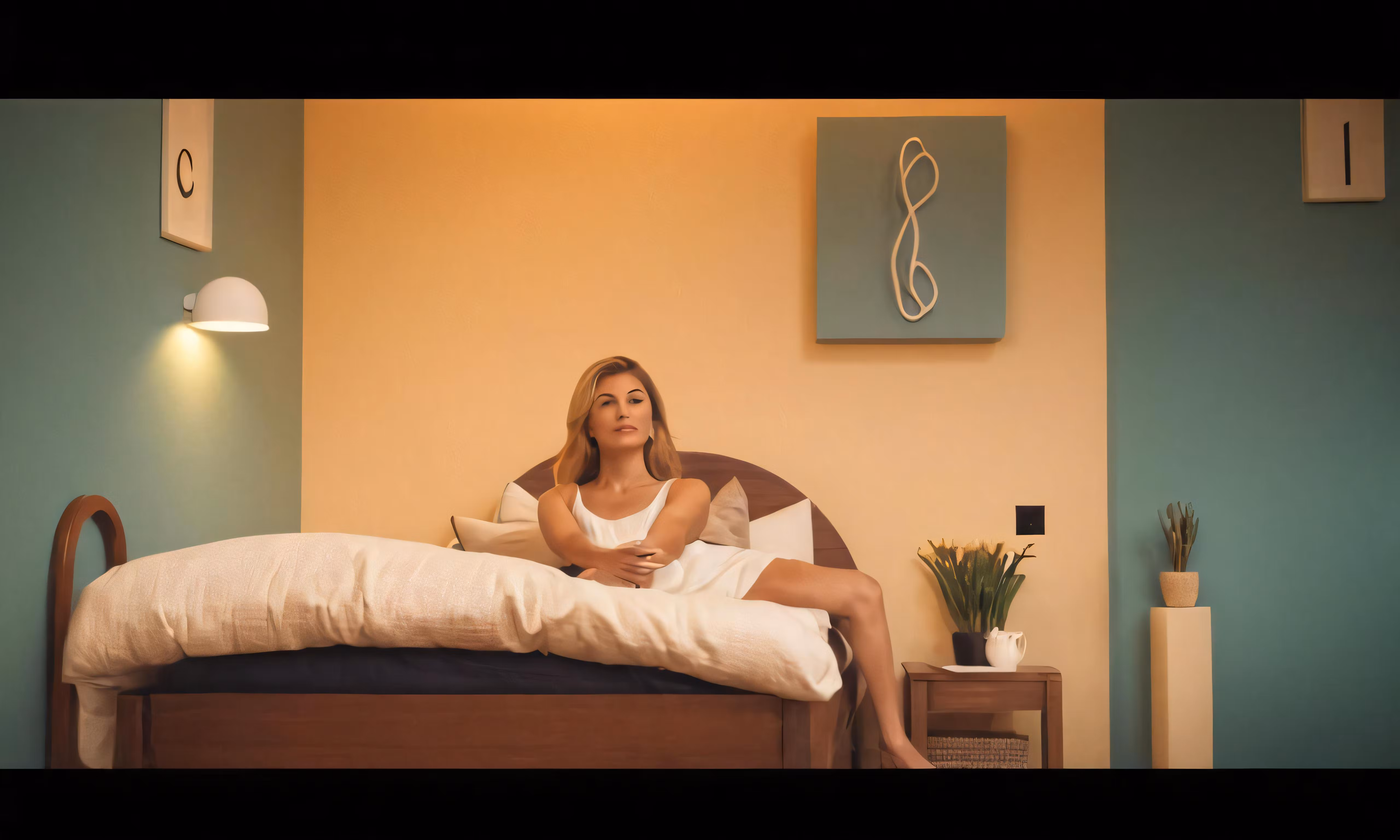High resolution picture, free to use, a woman is sitting in her bed looking sad