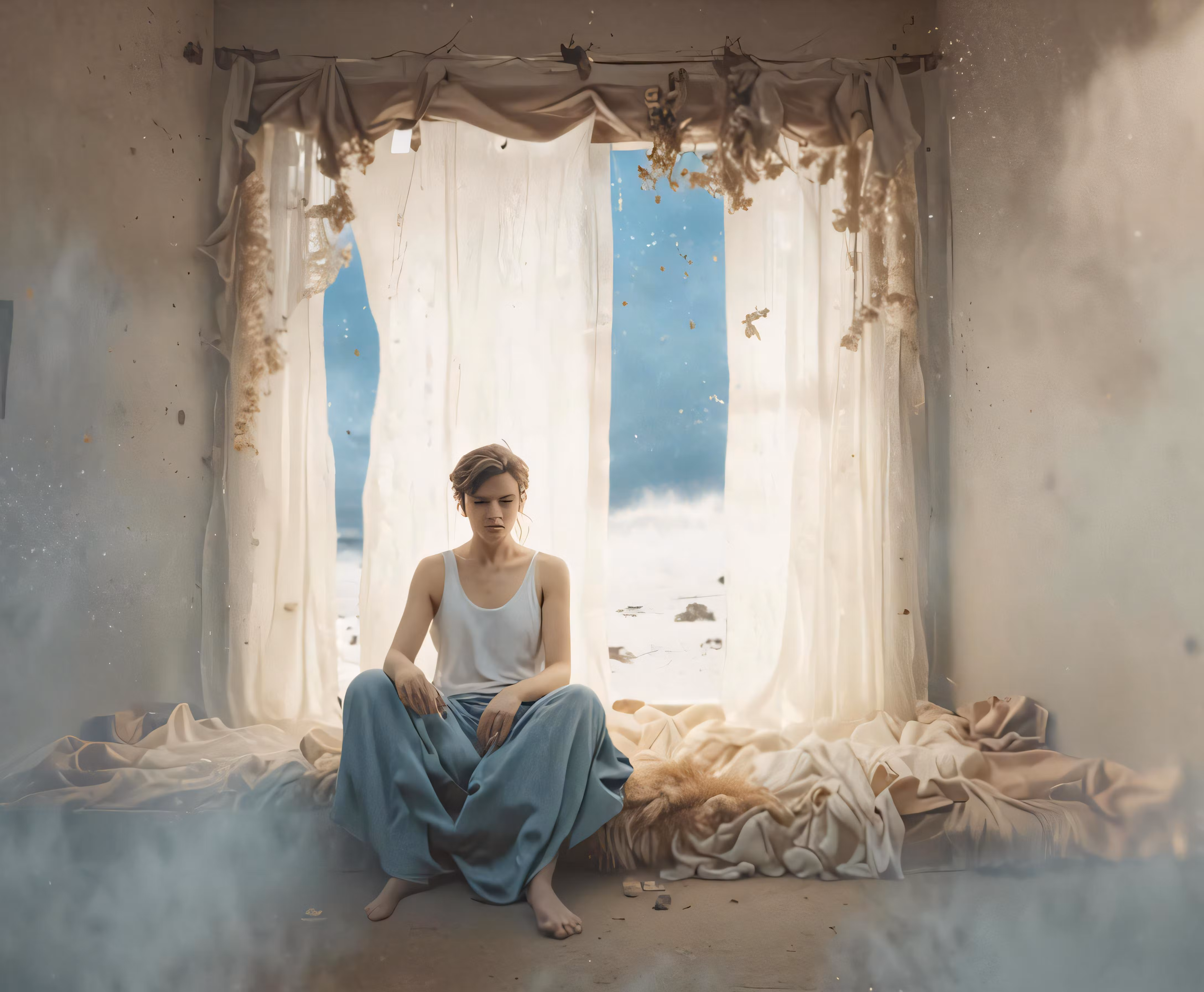High resolution picture, free to use, a woman is sitting in the window sill looking outside