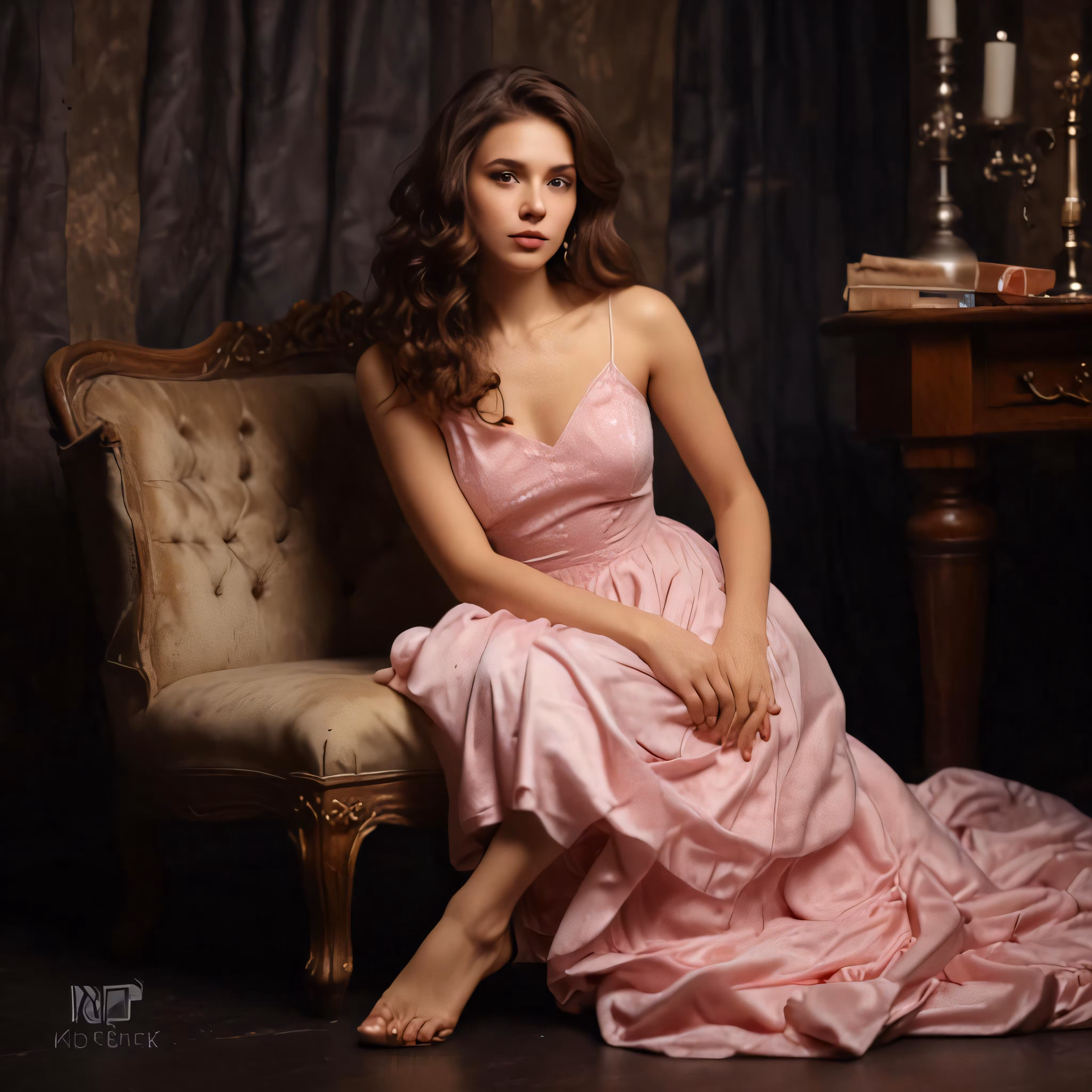 High resolution picture, free to use, a woman is sitting on a chair wearing a dress