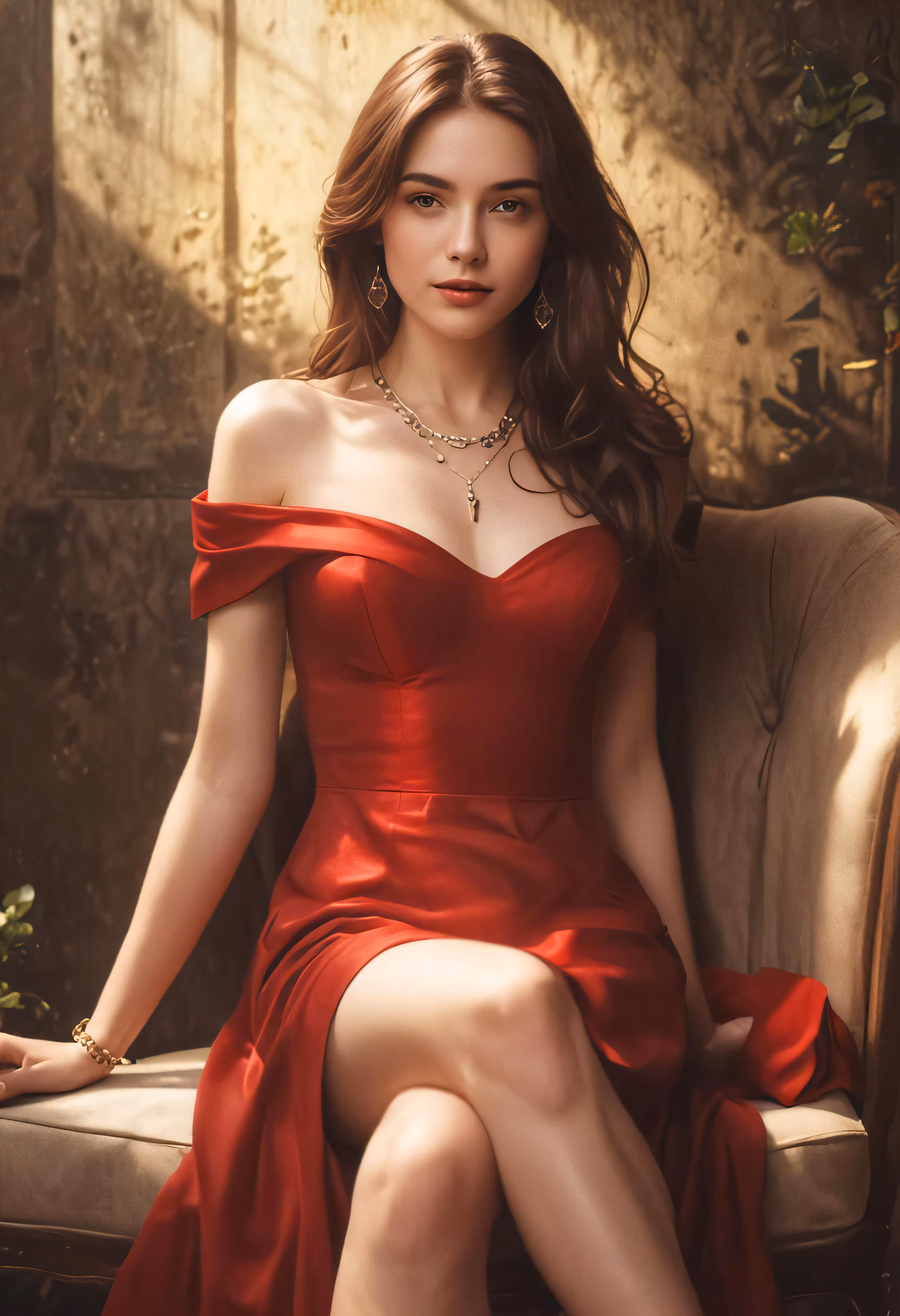 High resolution picture, free to use, a woman is sitting on a couch with her legs crossed