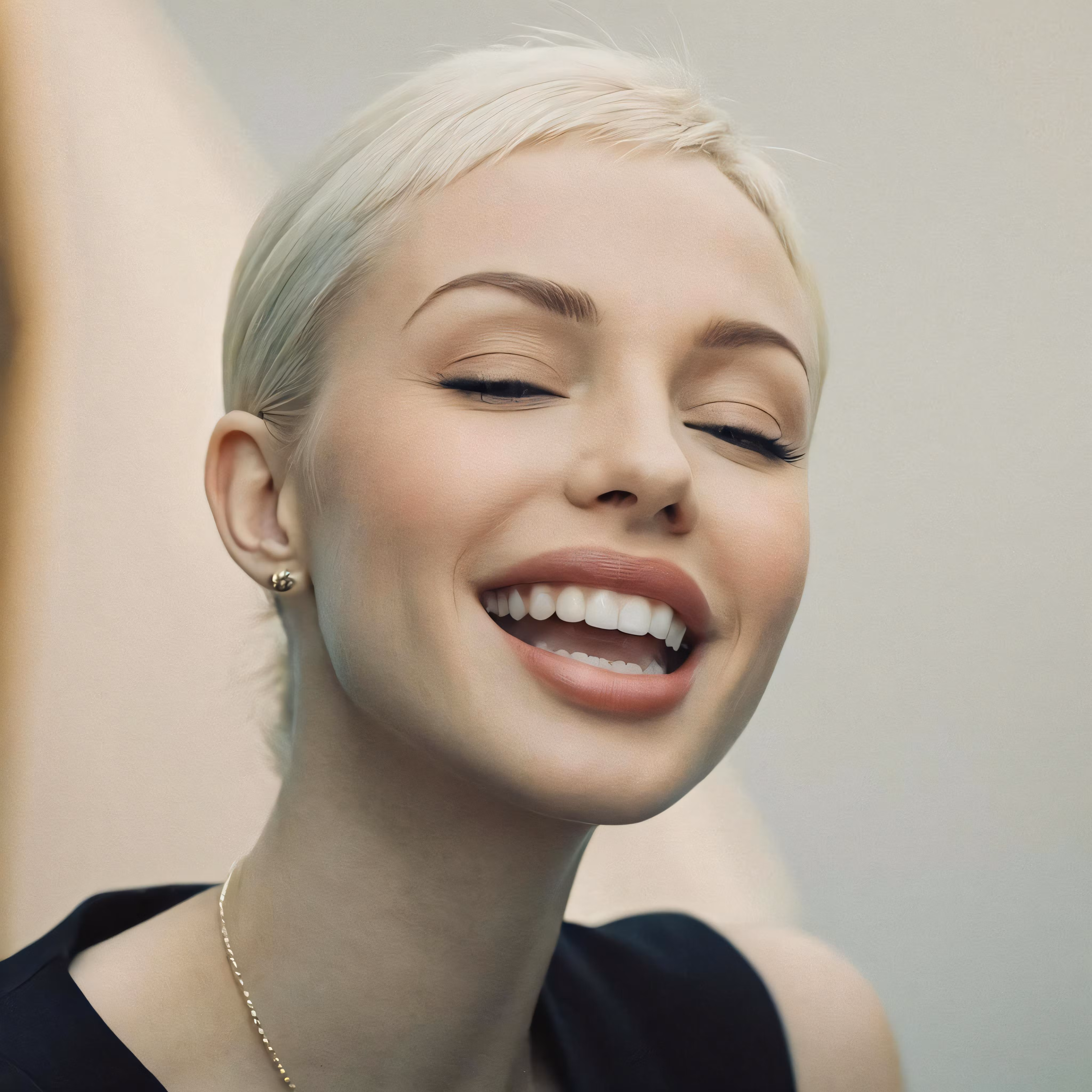 High resolution picture, free to use, a woman is smiling and wearing a necklace