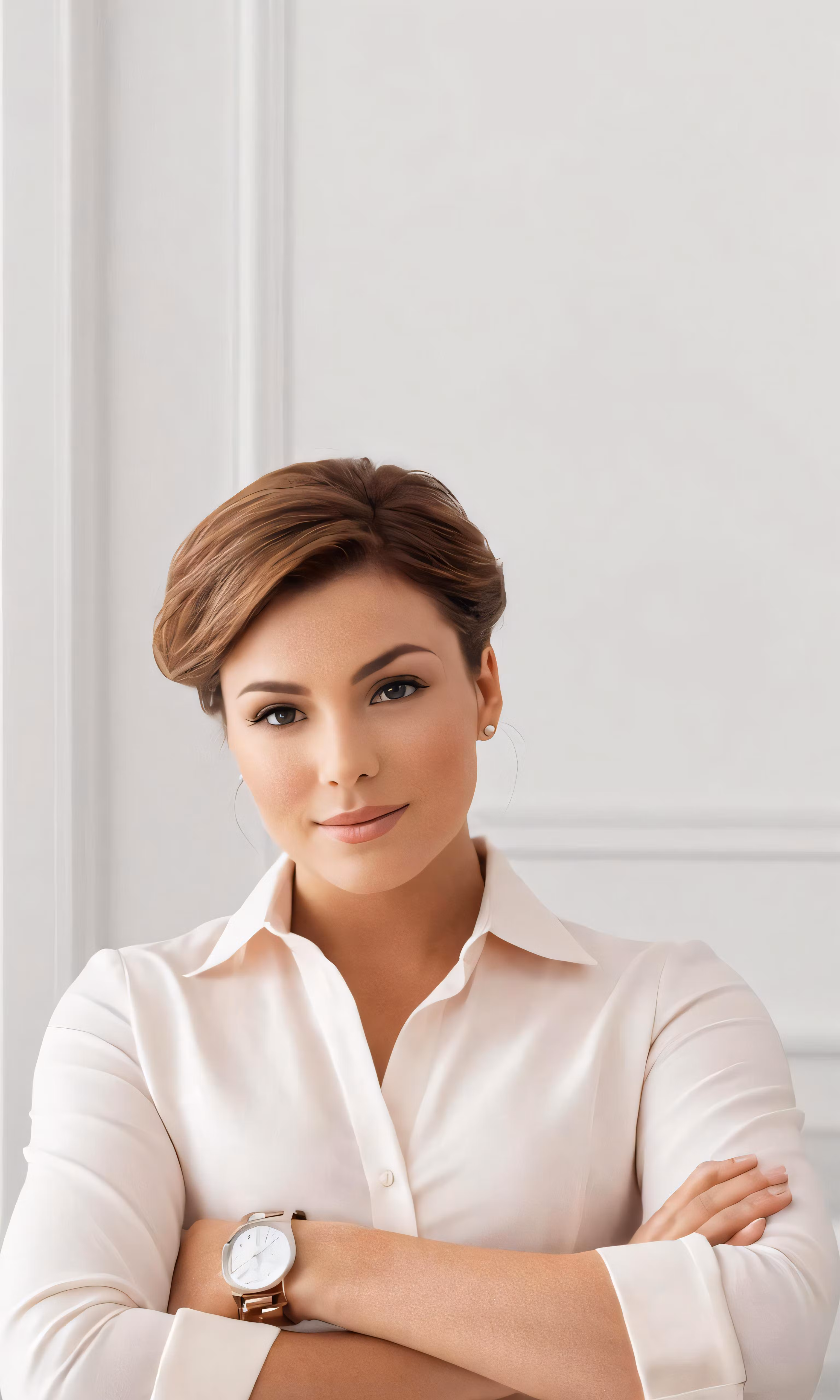 High resolution picture, free to use, a woman is smiling in front of a wall