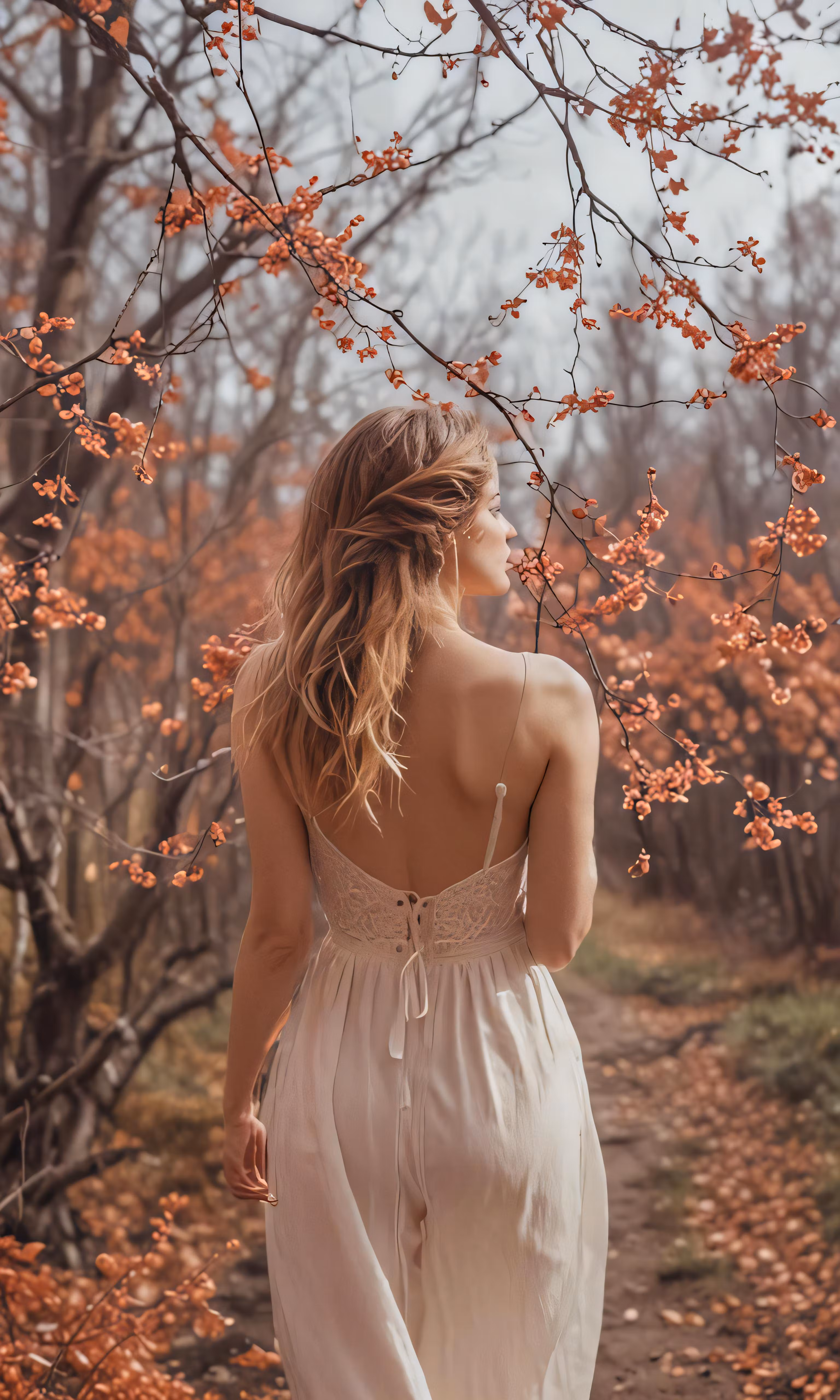 High resolution picture, free to use, a woman is standing in the forest by herself