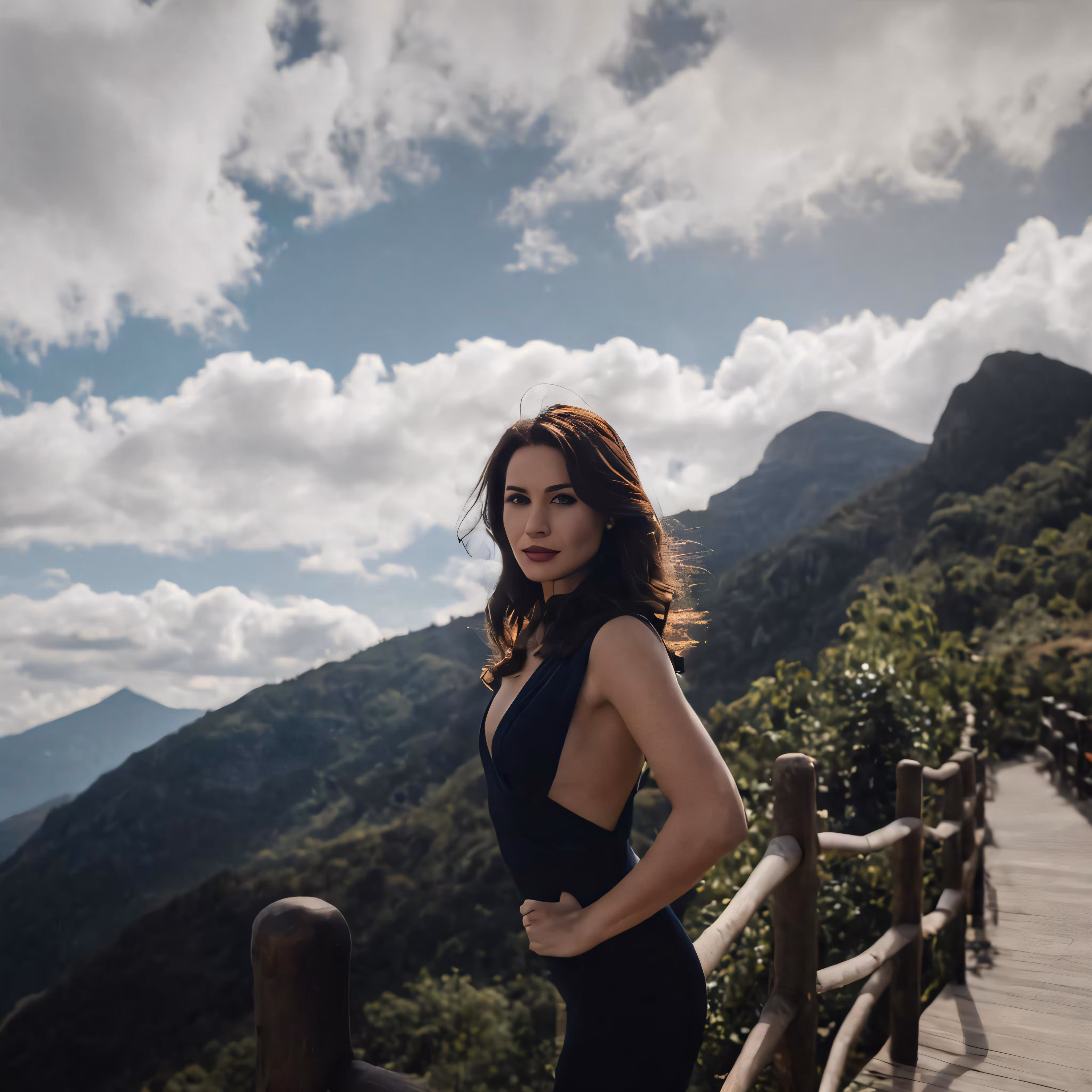 High resolution picture, free to use, a woman is standing on a wooden walkway