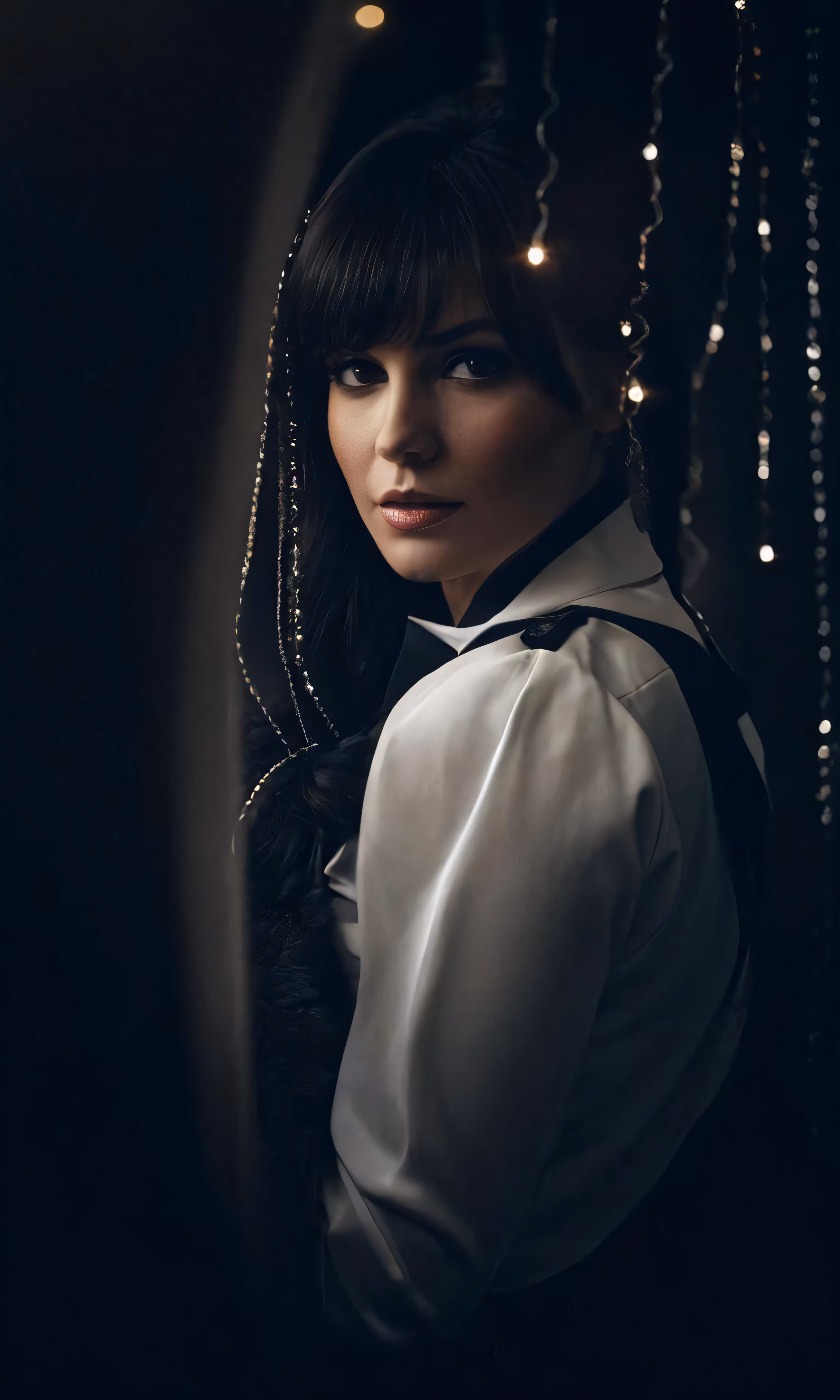 High resolution picture, free to use, a woman is wearing a collared blouse and lights