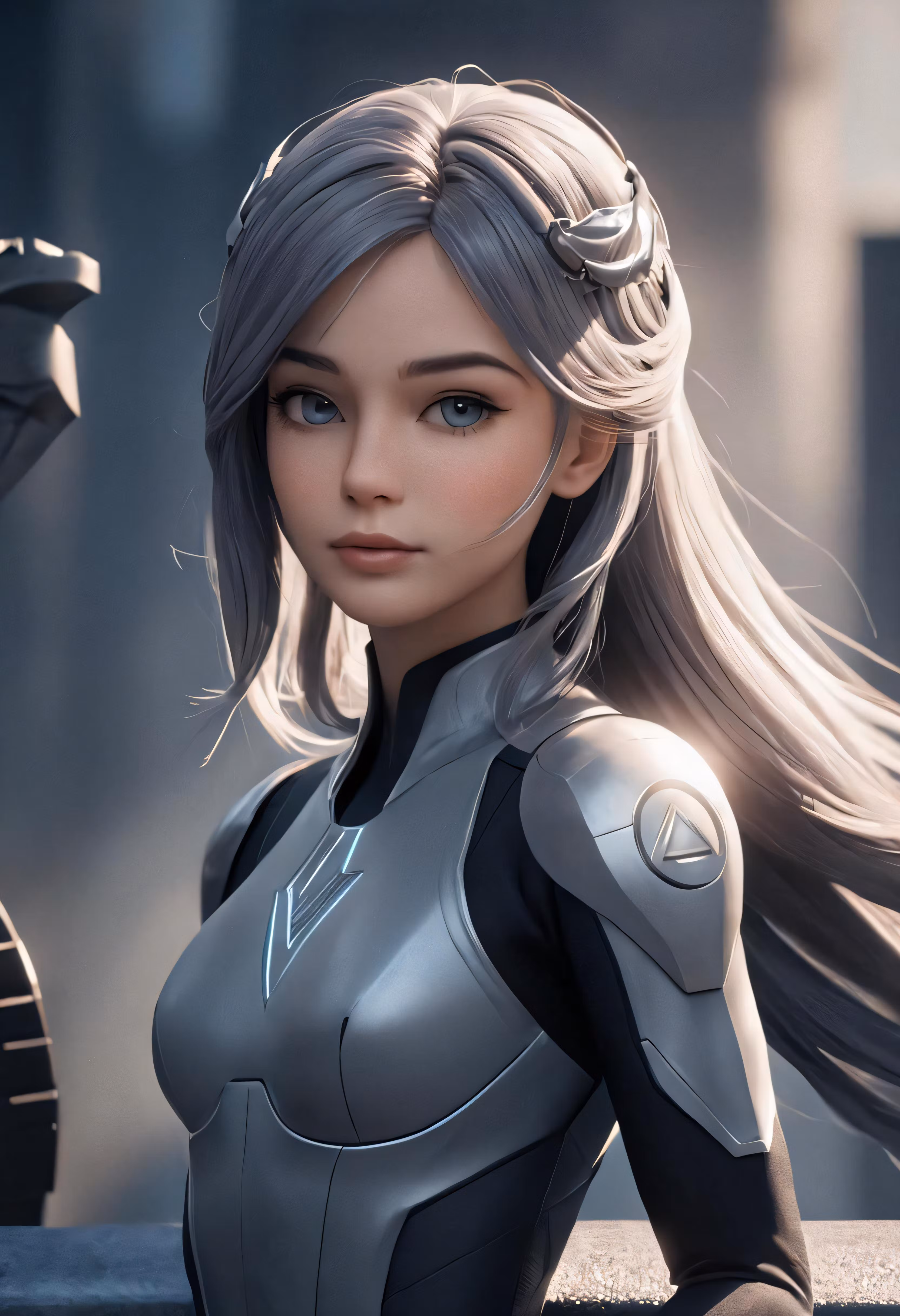 High resolution picture, free to use, a woman is wearing futuristic suit and a helmet