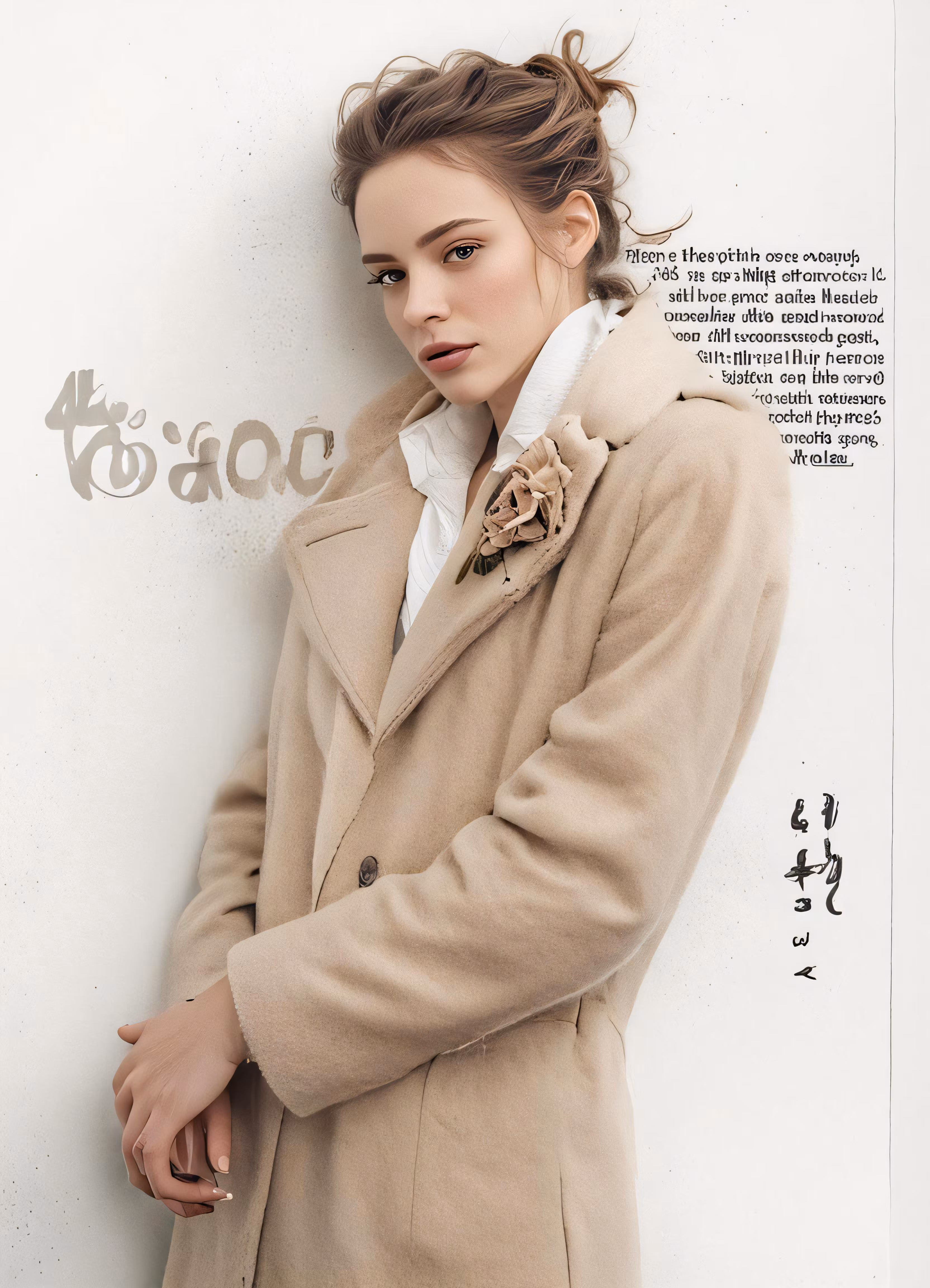 High resolution picture, free to use, a woman leaning against a wall wearing a coat