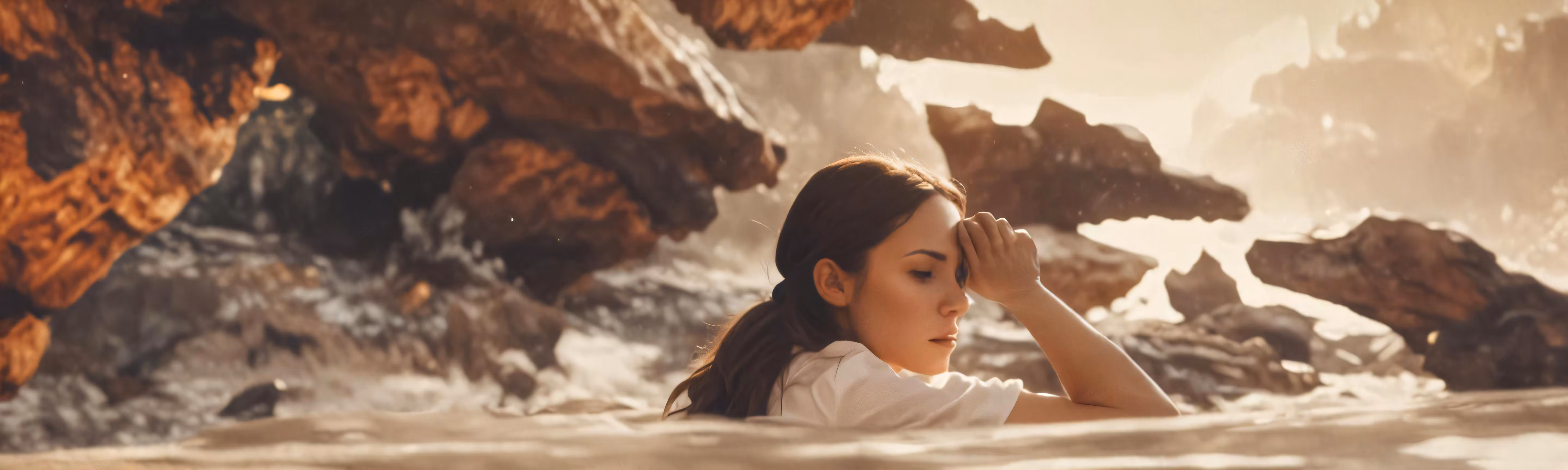 High resolution picture, free to use, a woman looking at the surface of a body of water