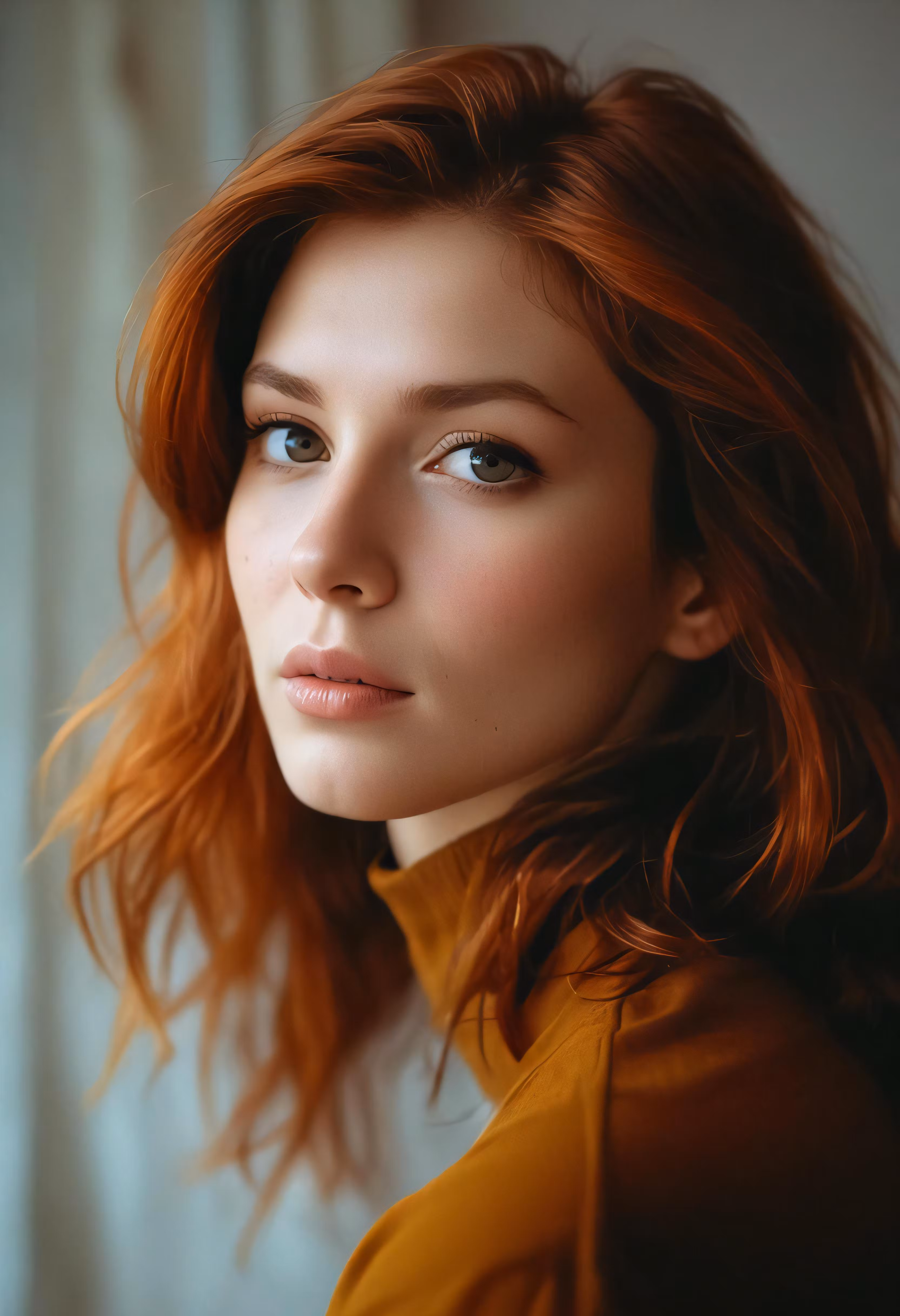High resolution picture, free to use, a woman looking off into the distance with blue eyes