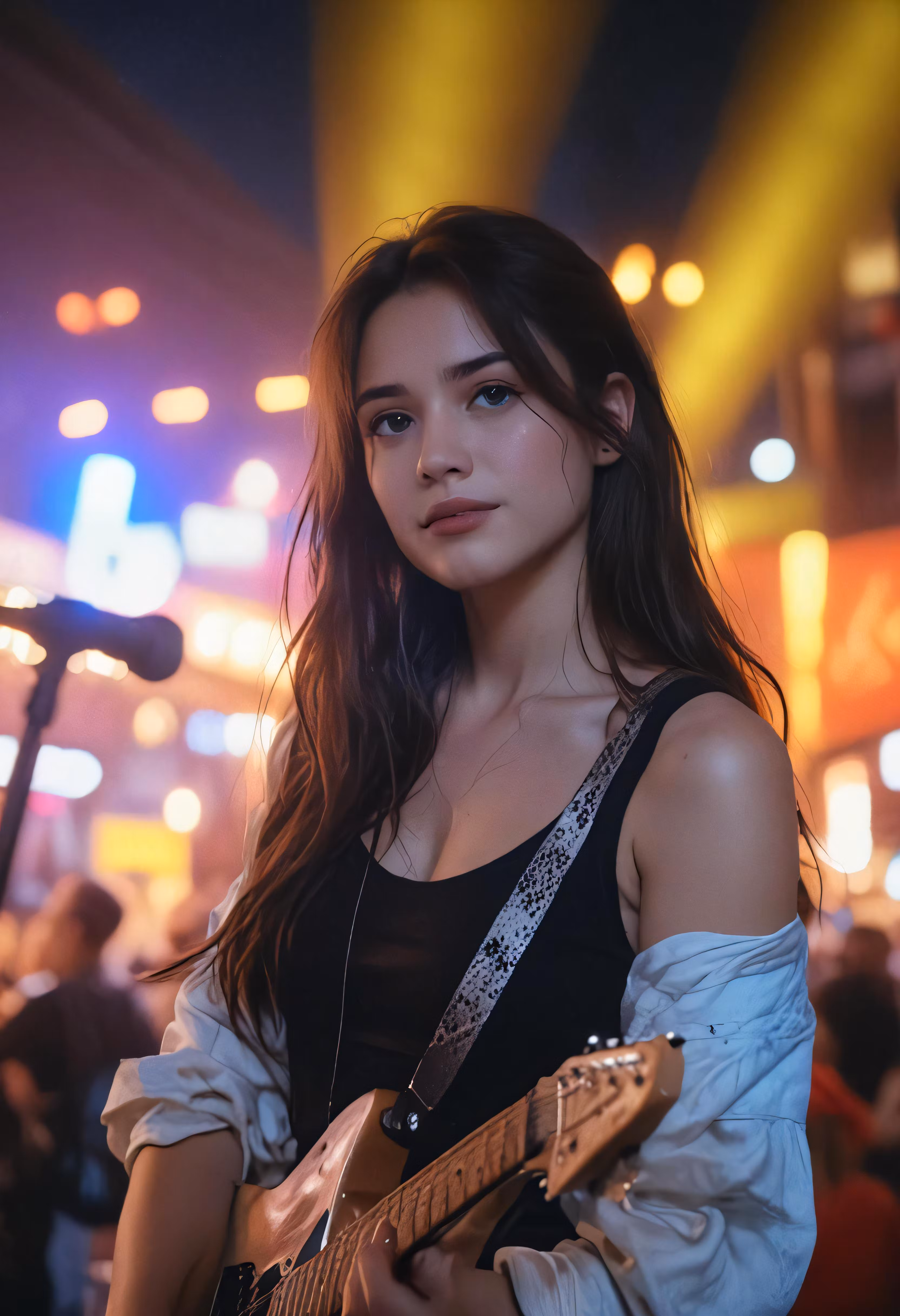 High resolution picture, free to use, a woman playing a guitar at a festival
