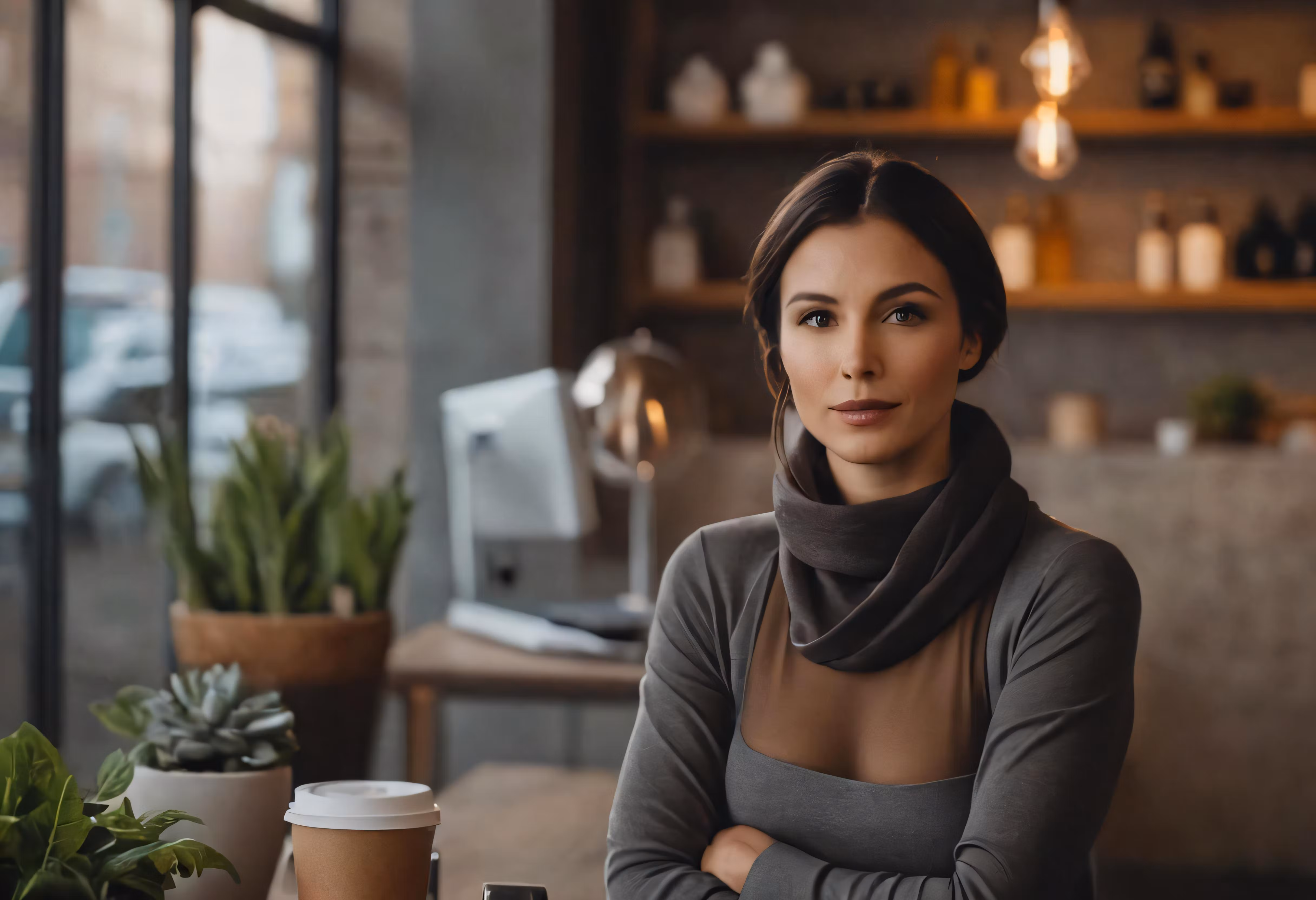 High resolution picture, free to use, a woman poses at a cafe table