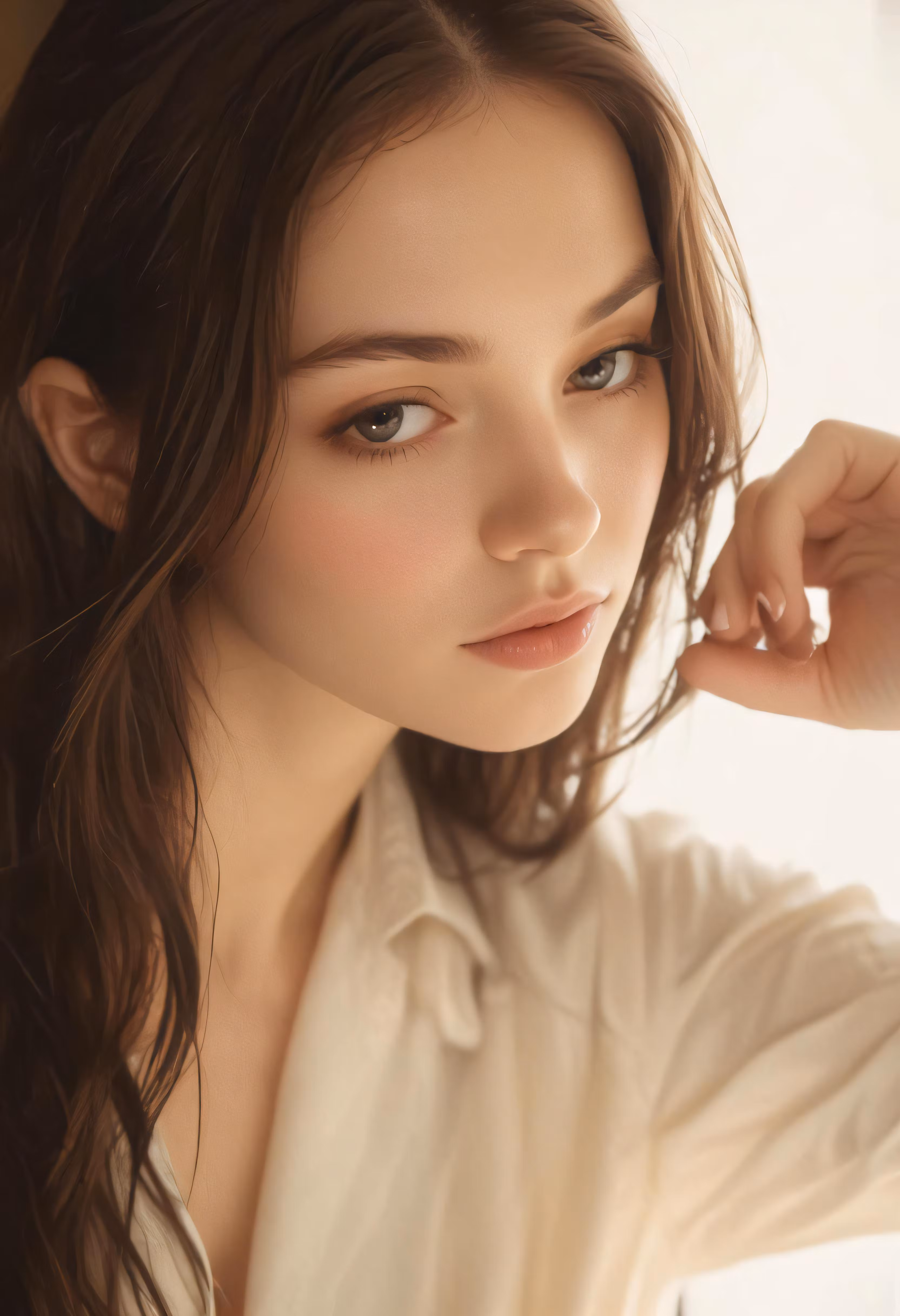 High resolution picture, free to use, a woman posing for the camera in a white shirt