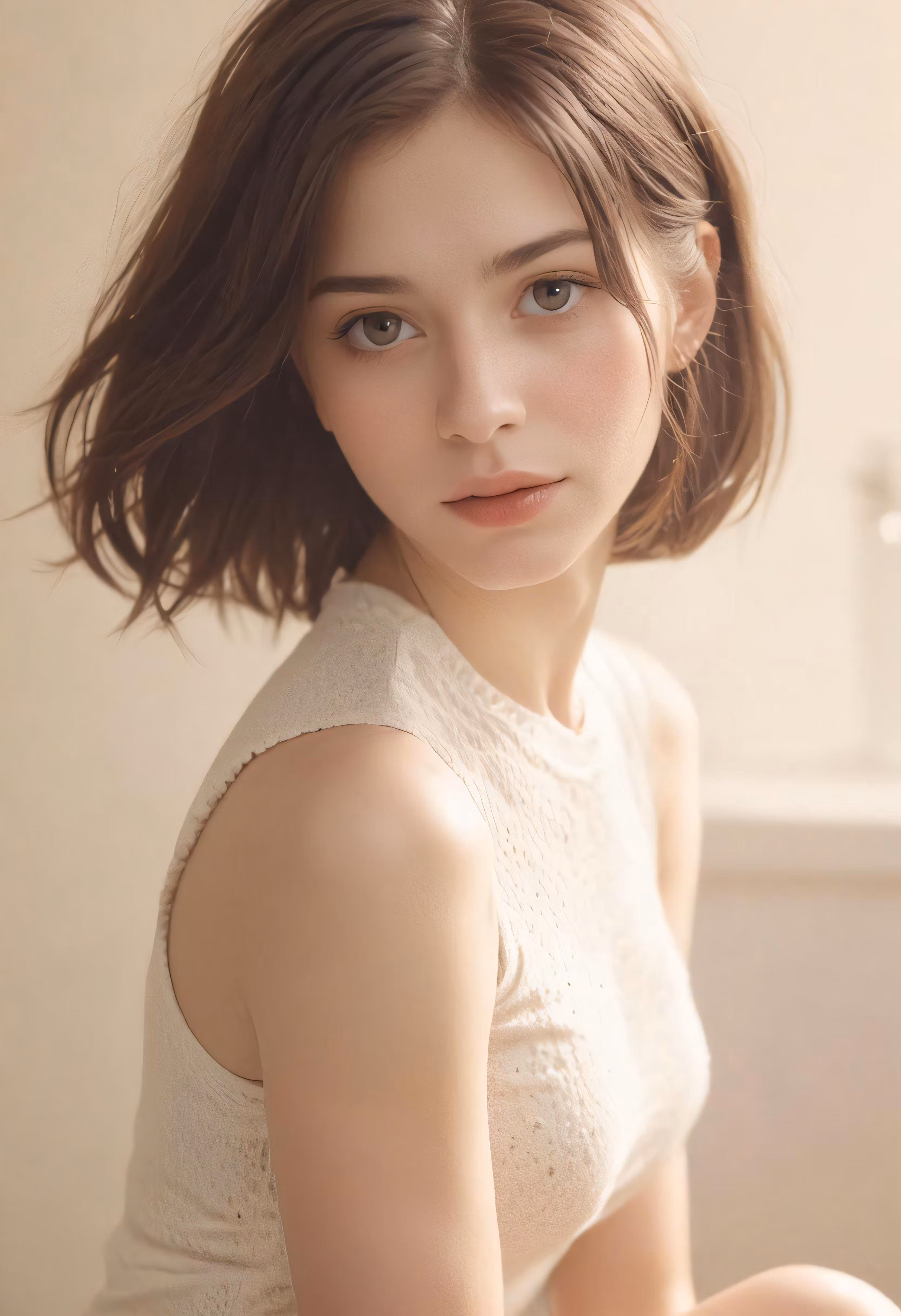 High resolution picture, free to use, a woman posing for the camera with a white shirt on