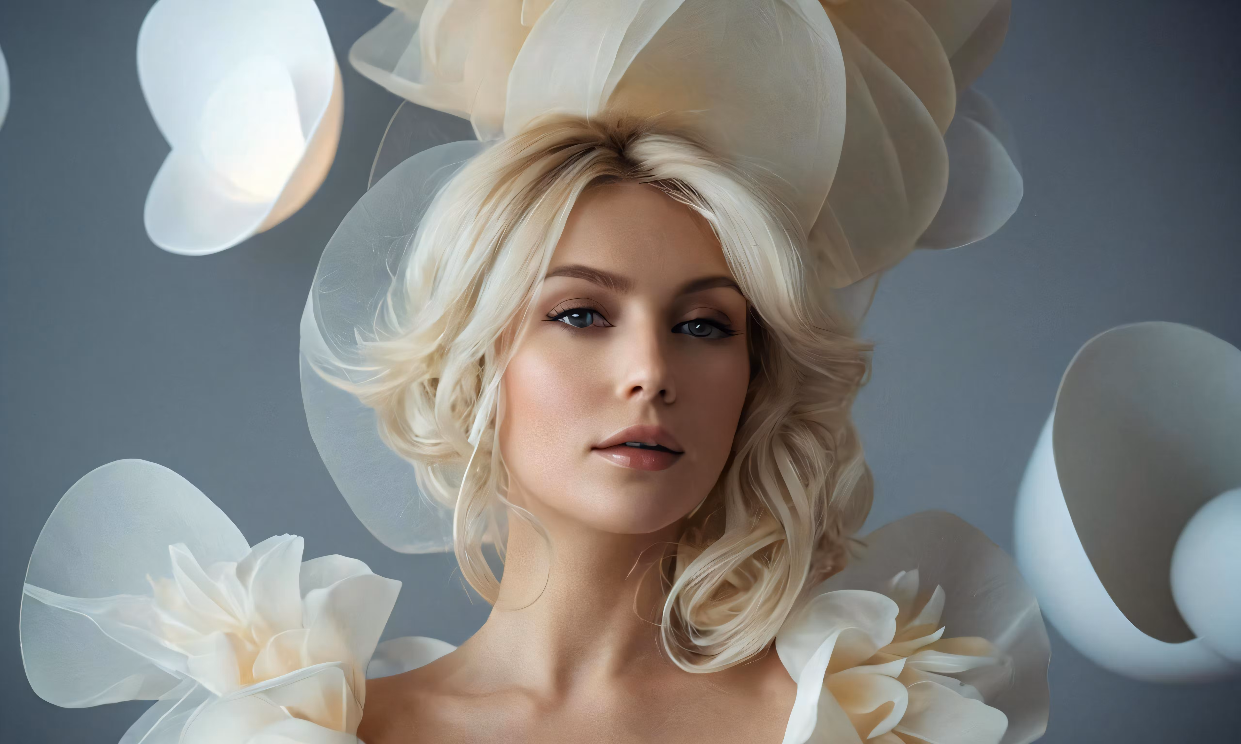 High resolution picture, free to use, a woman posing with flowers in her hair