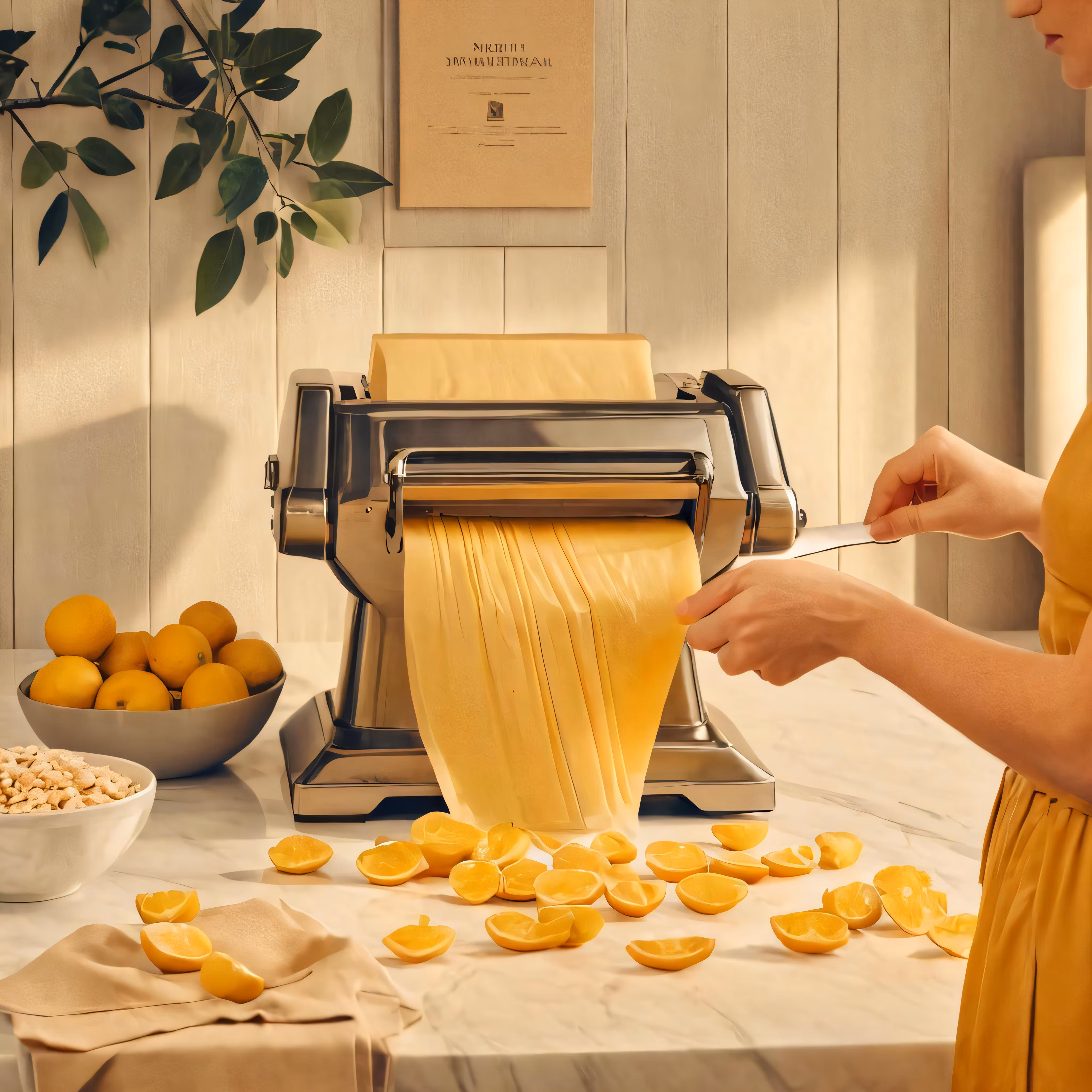 High resolution picture, free to use, a woman pulling lemons out of the press