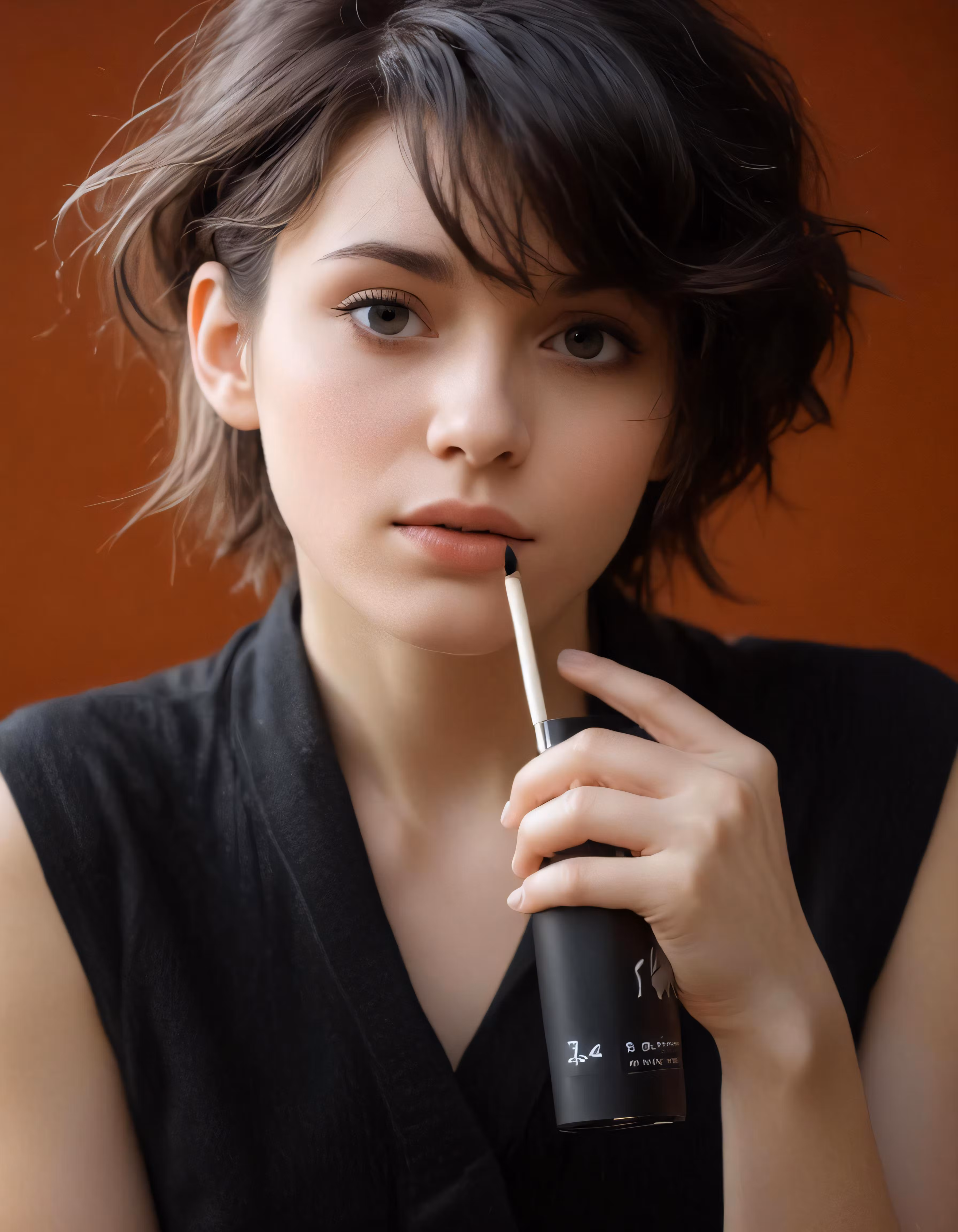 High resolution picture, free to use, a woman putting lipstick in her lips next to a mirror
