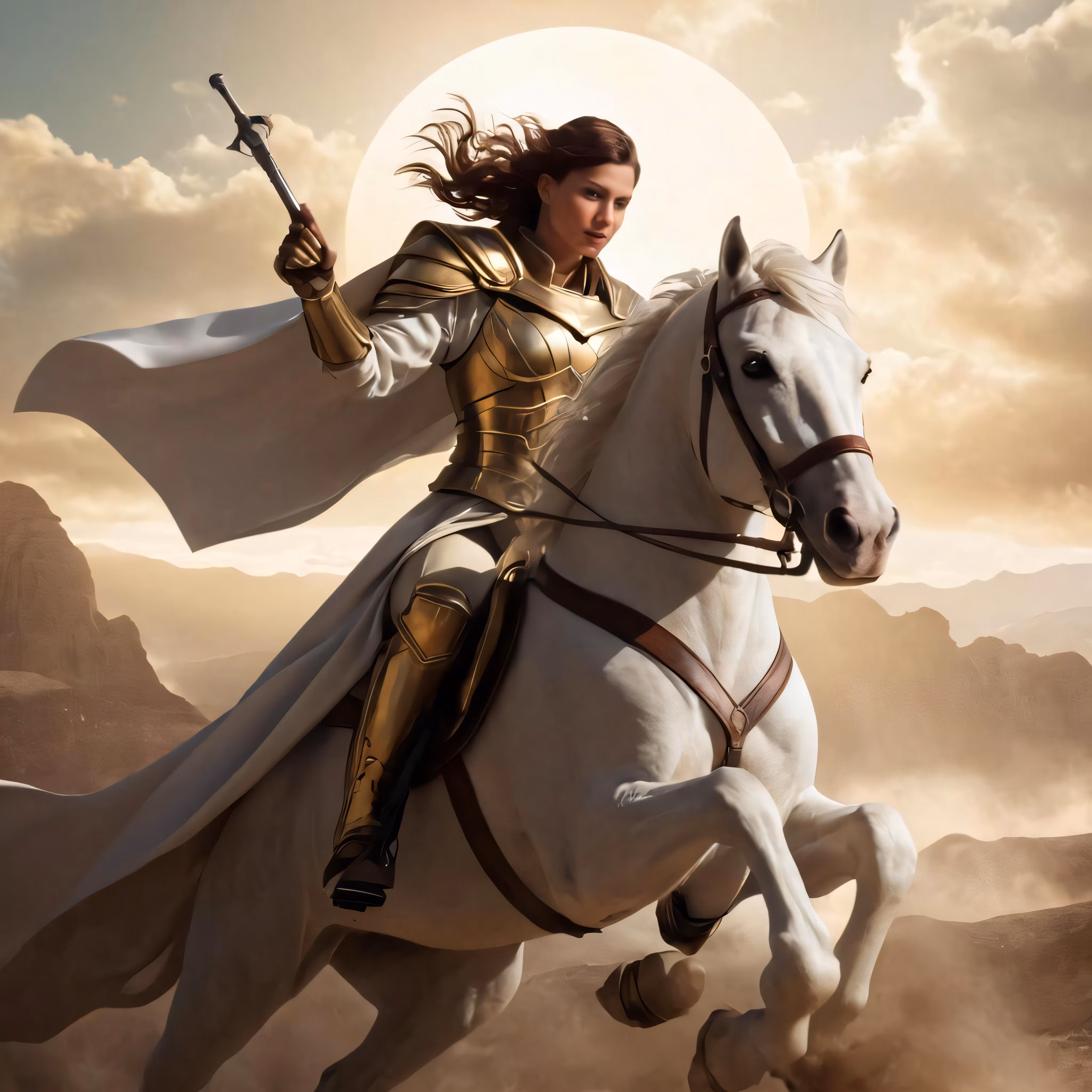 High resolution picture, free to use, a woman riding a horse with a long cloak on it