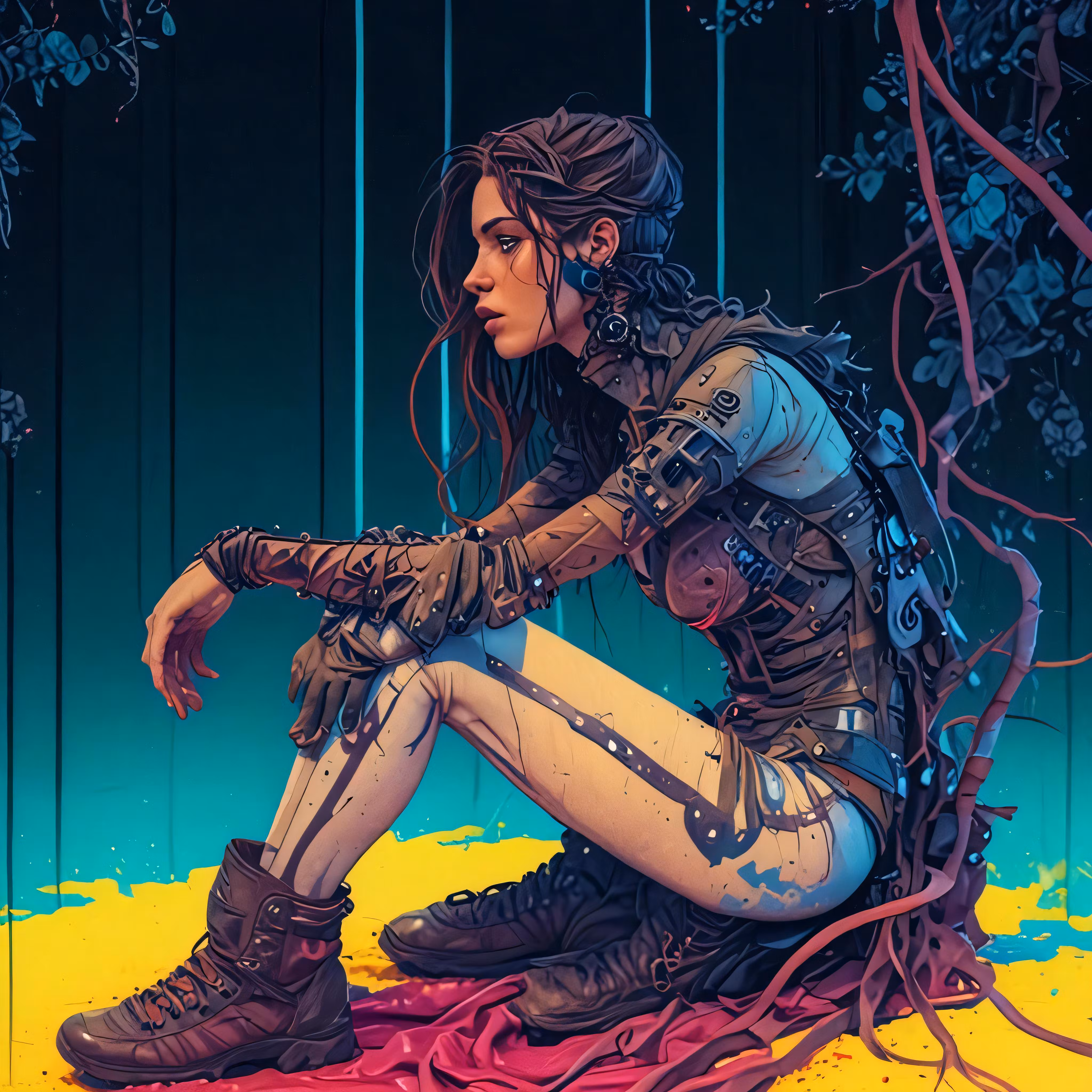 High resolution picture, free to use, a woman sits in the shade of a tree while she is holding her knee