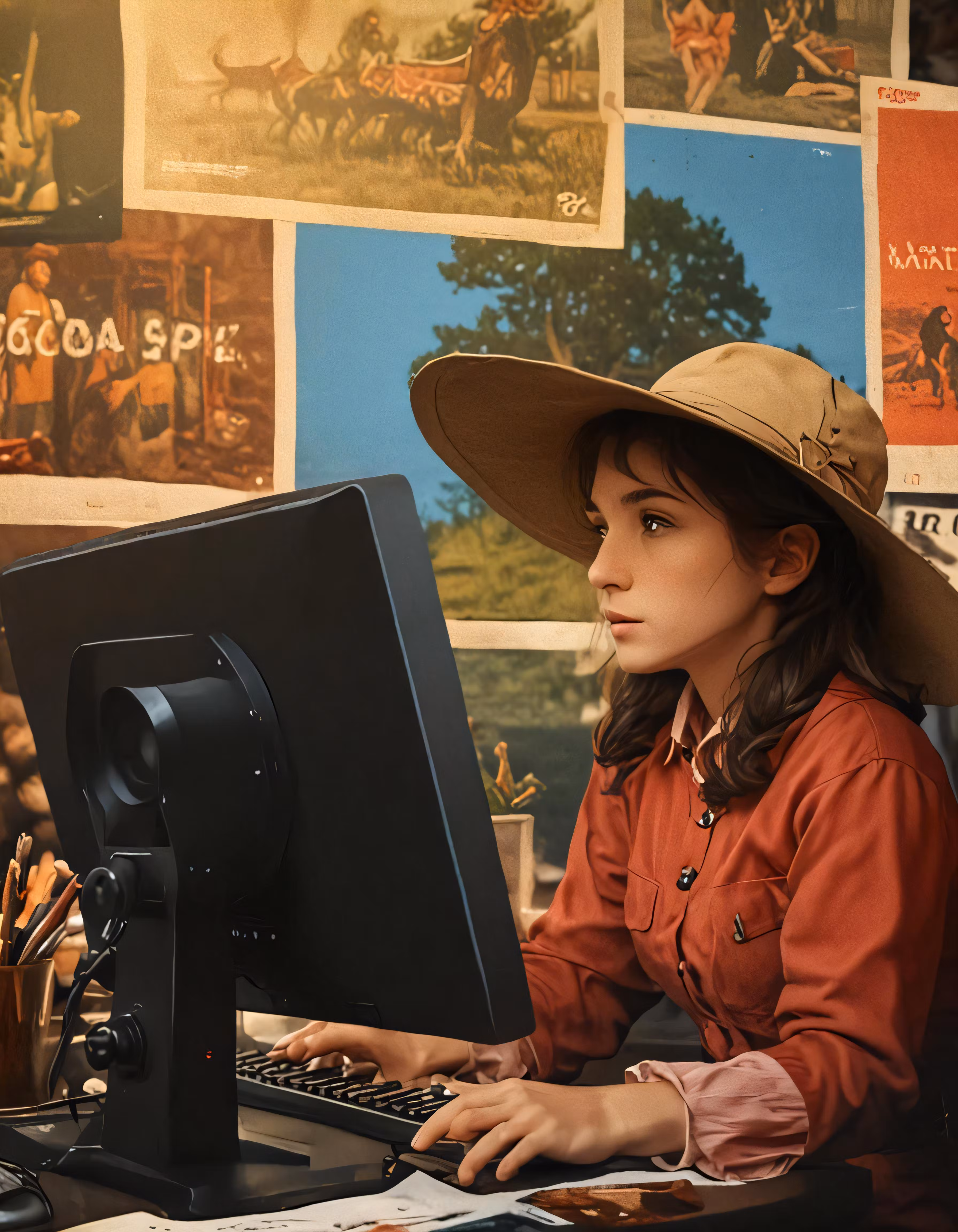 High resolution picture, free to use, a woman sitting at a desk using a computer