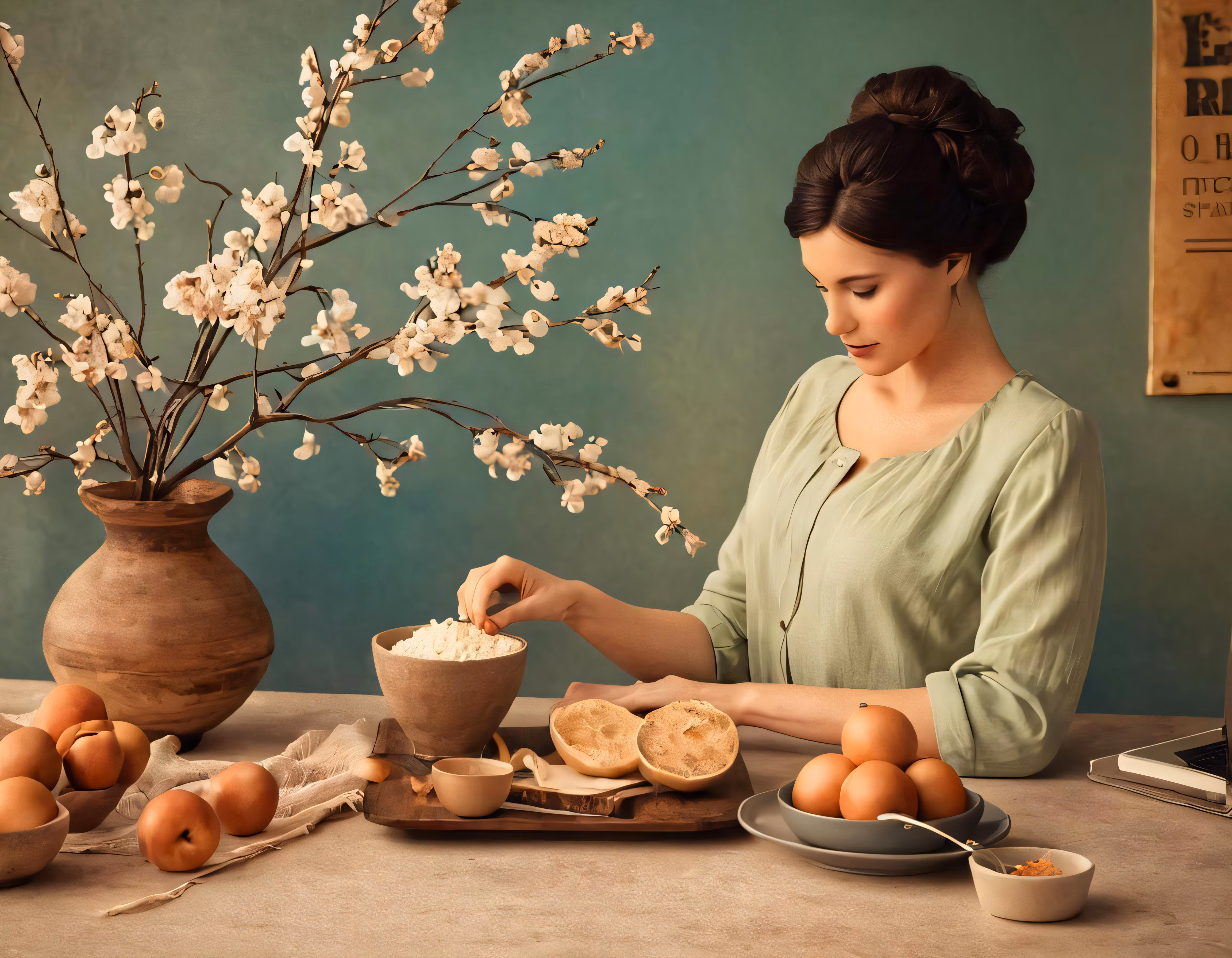 High resolution picture, free to use, a woman sitting at a table and mixing something