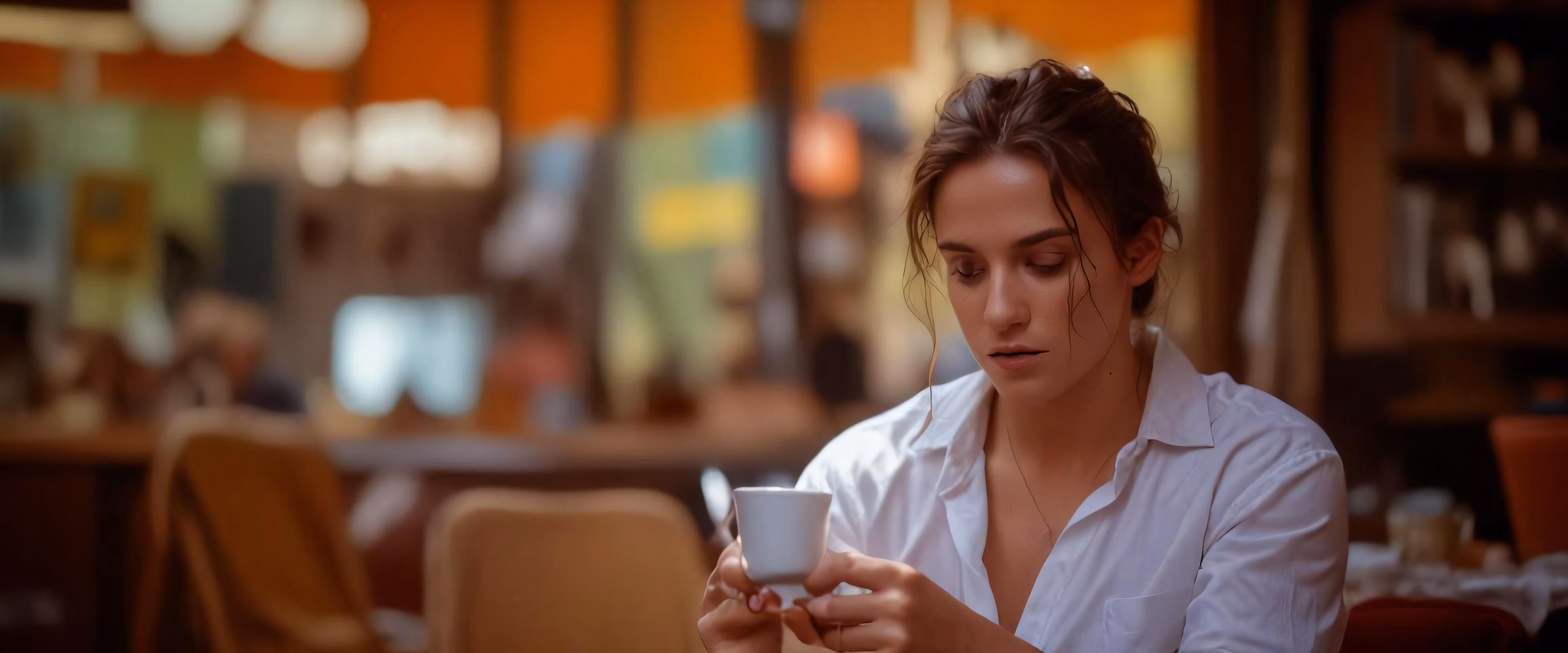 High resolution picture, free to use, a woman sitting at a table holding a smart phone