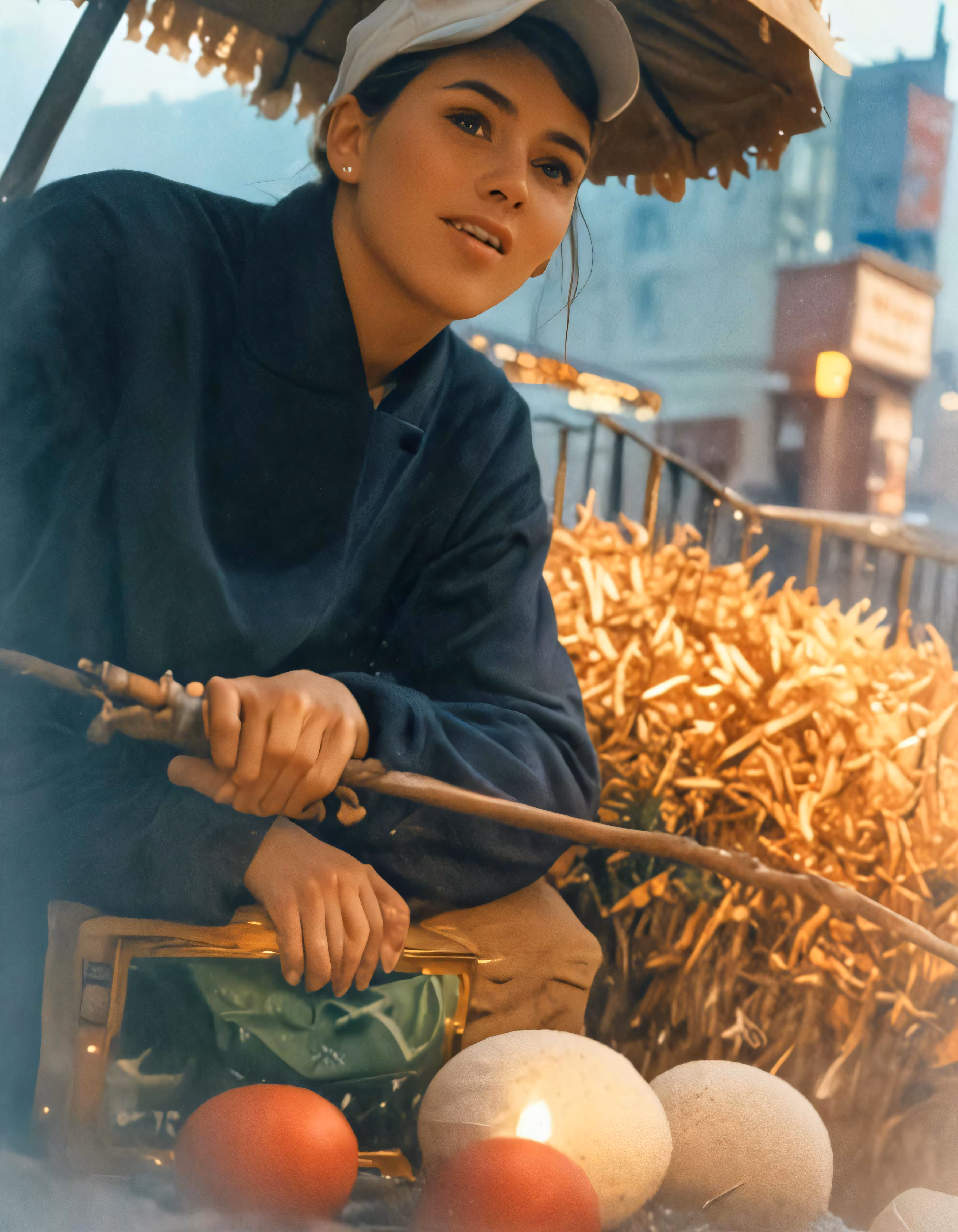 High resolution picture, free to use, a woman sitting at the end of a pile of straw