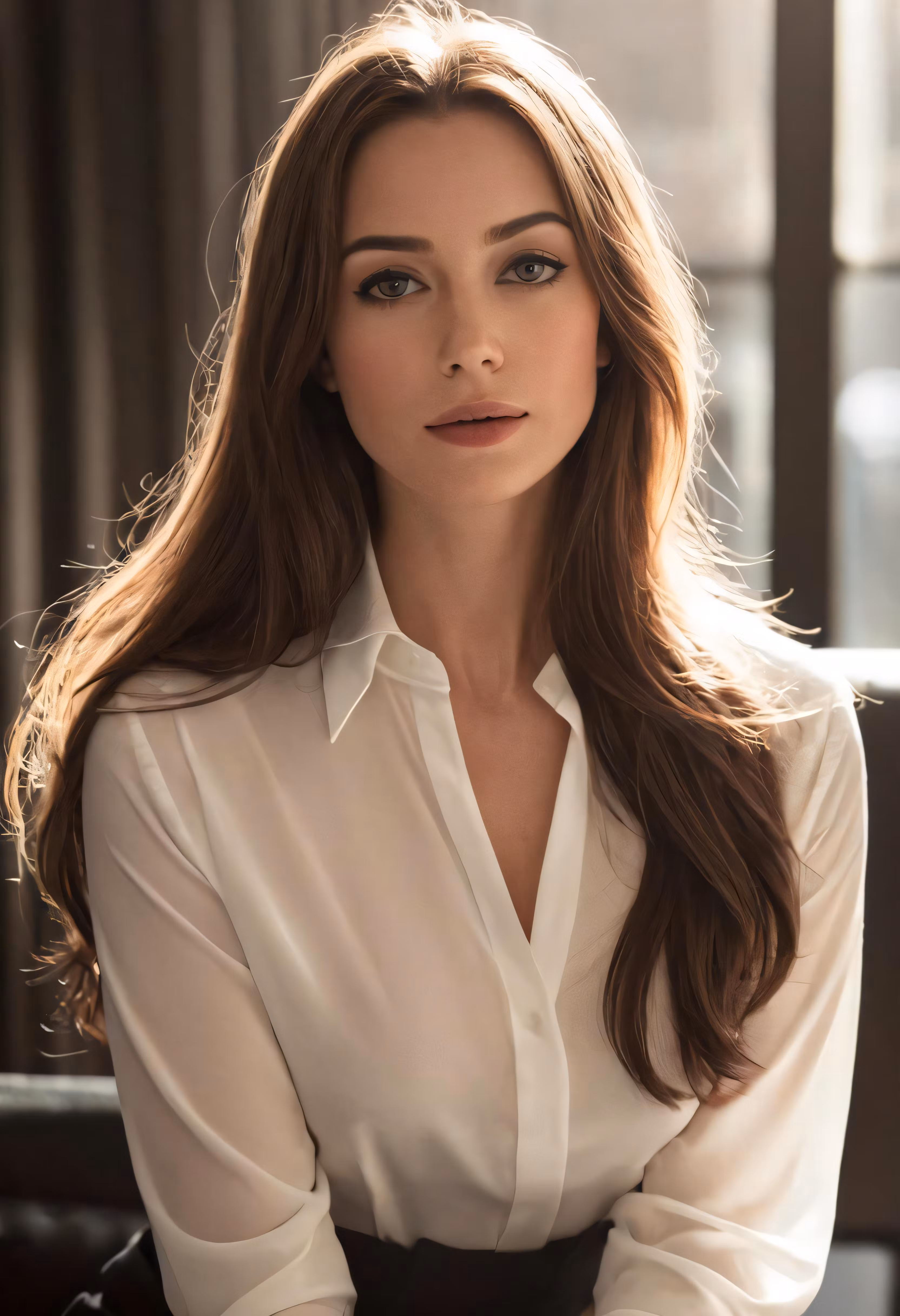 High resolution picture, free to use, a woman sitting in a chair with her arms crossed