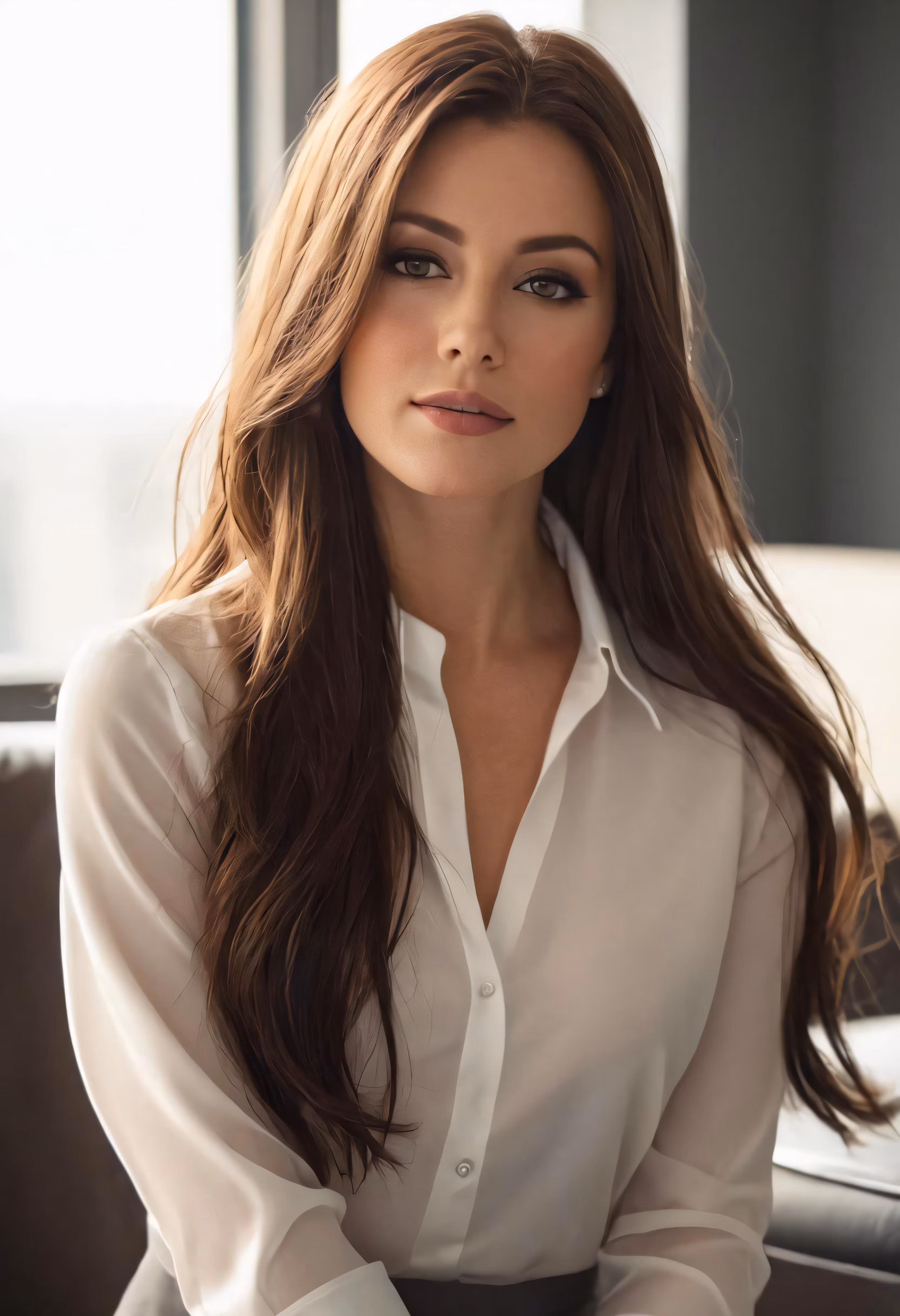 High resolution picture, free to use, a woman sitting on a couch with her arms crossed