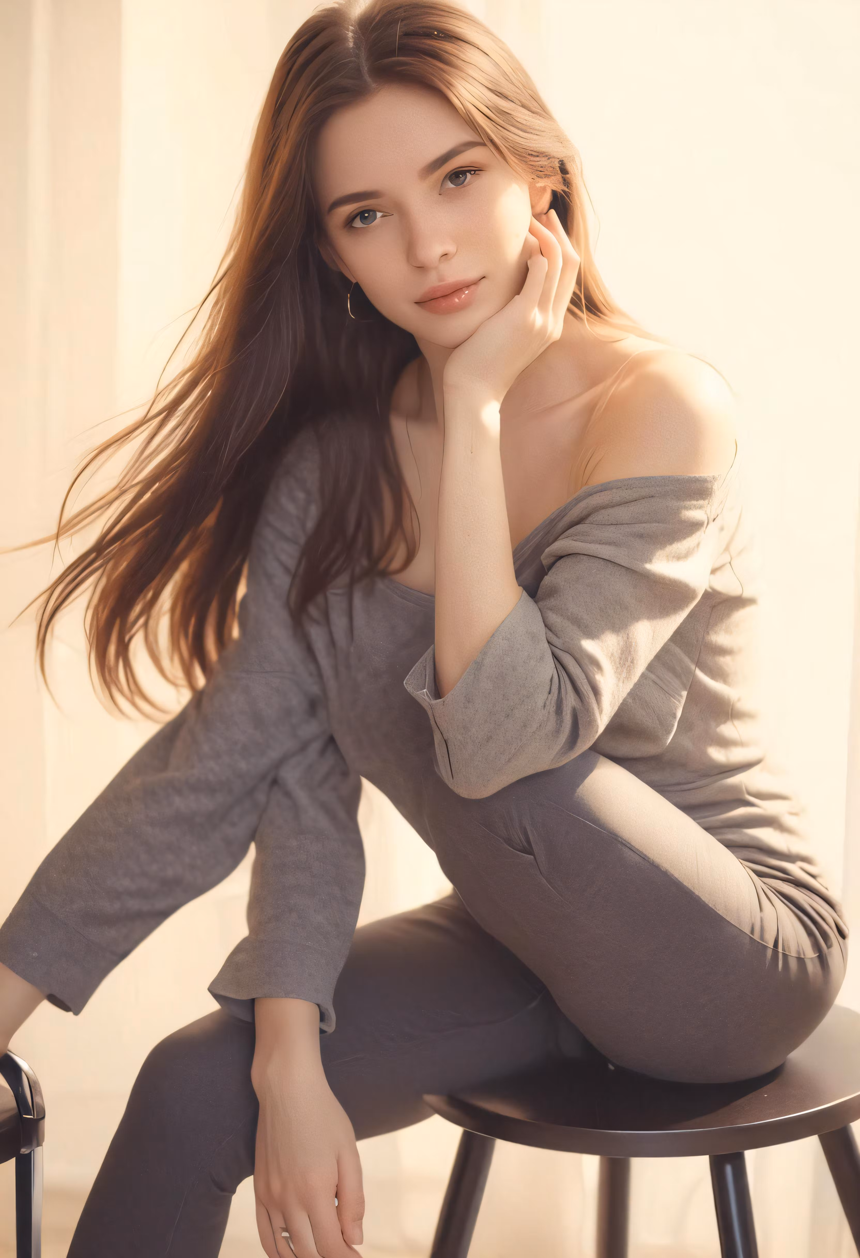 High resolution picture, free to use, a woman sitting on a stool and posing for the camera