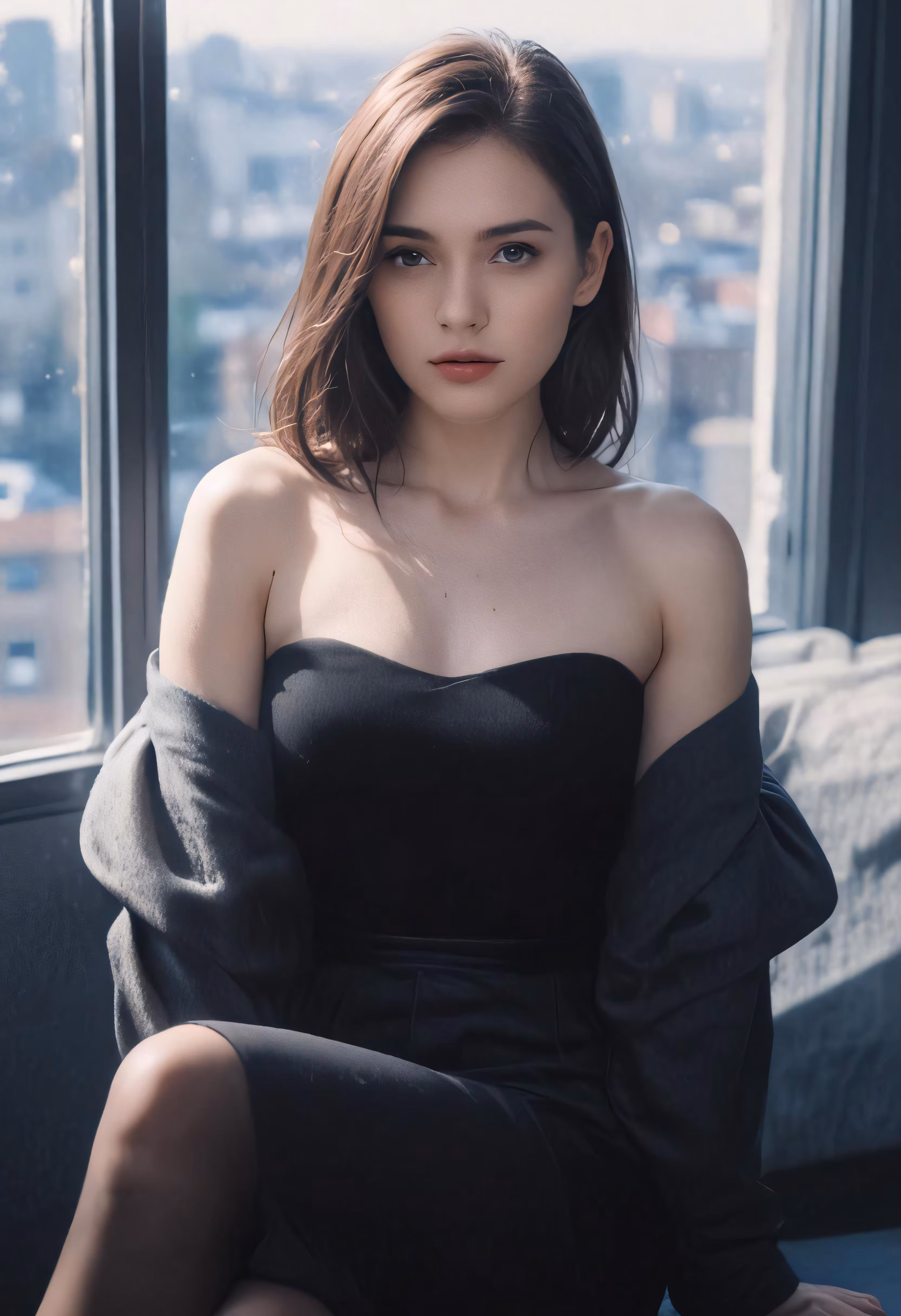 High resolution picture, free to use, a woman sitting on top of a bed next to a window