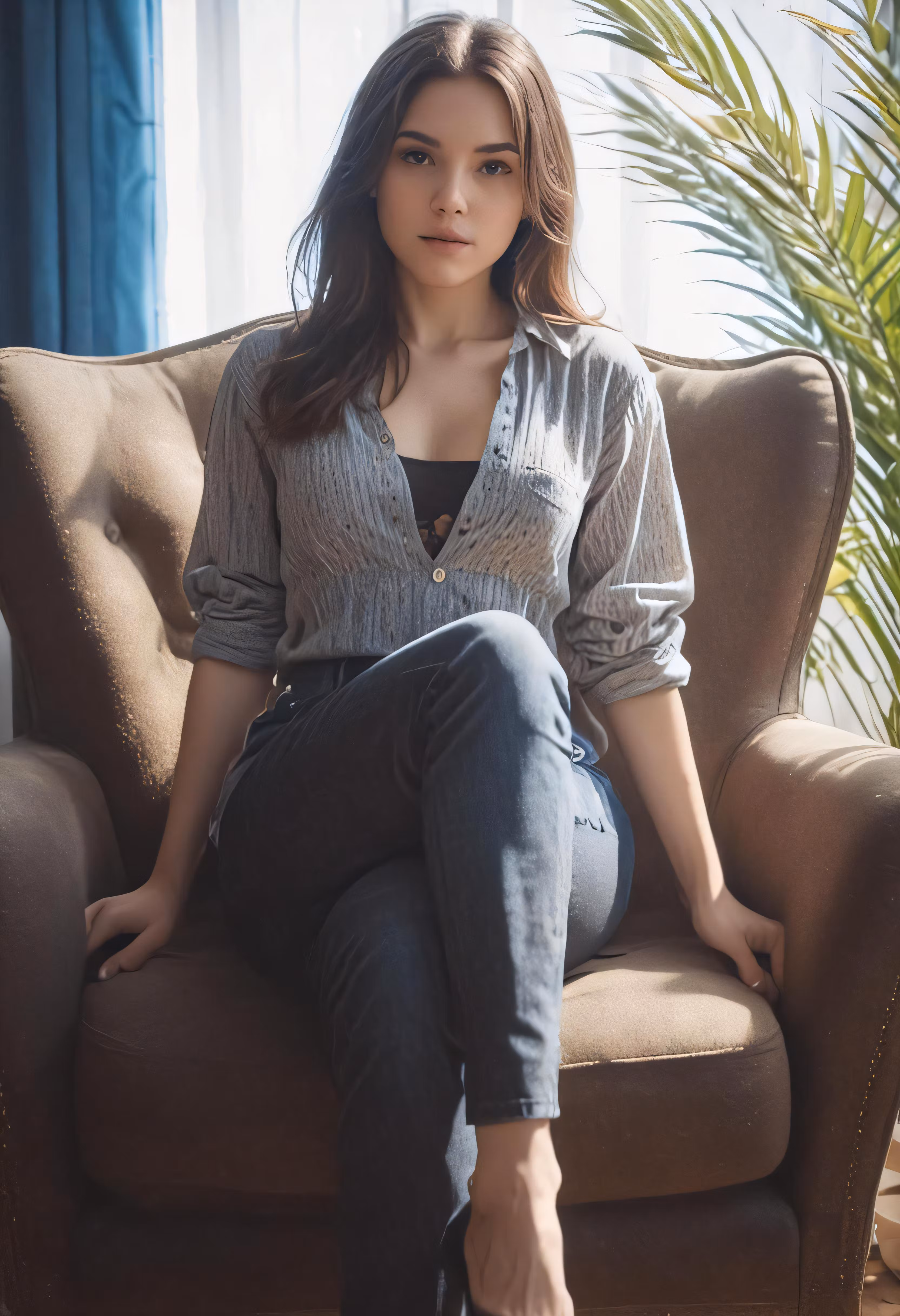 High resolution picture, free to use, a woman sitting on top of a chair