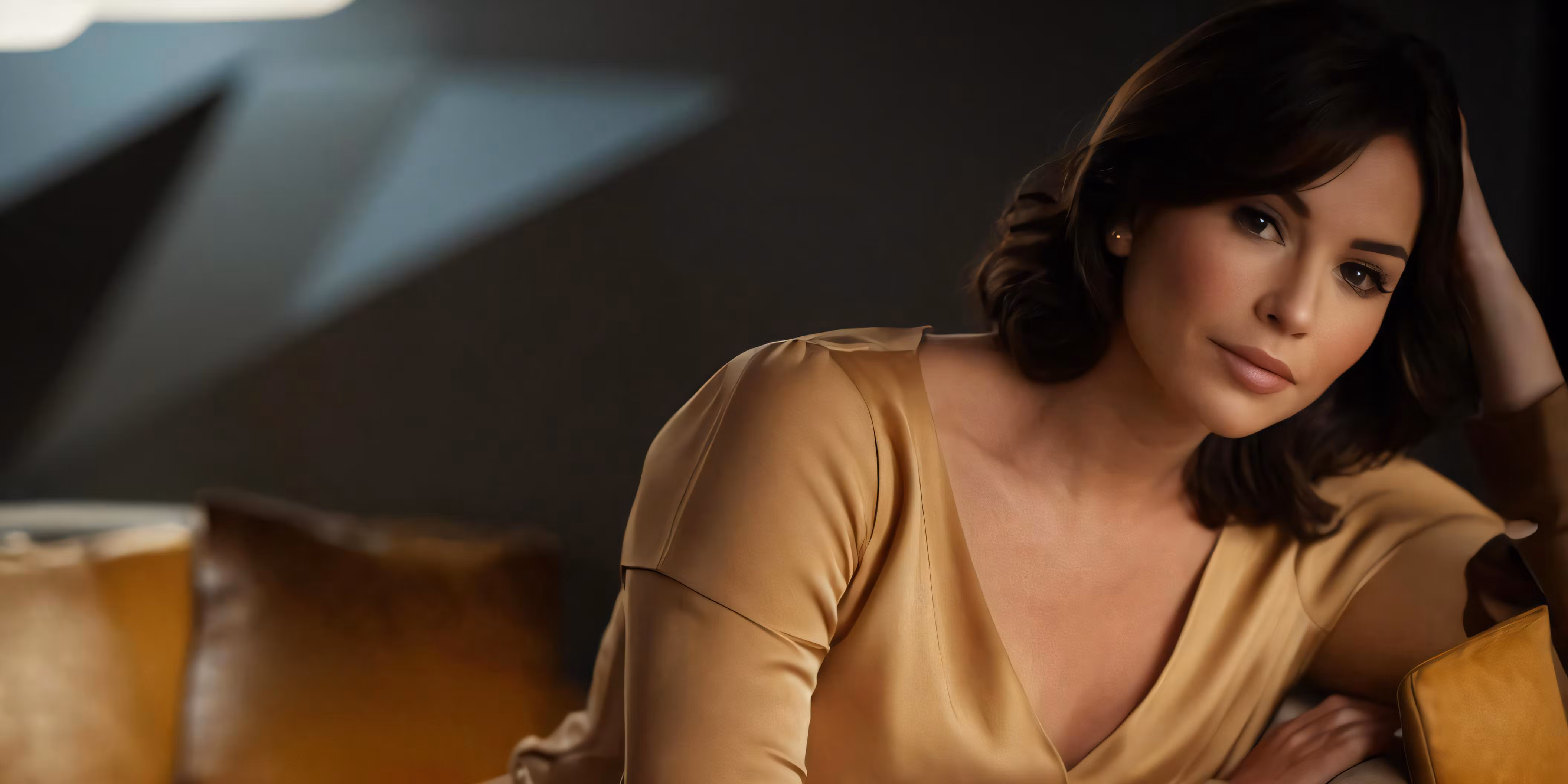 High resolution picture, free to use, a woman sitting on top of a couch holding her arm in the air