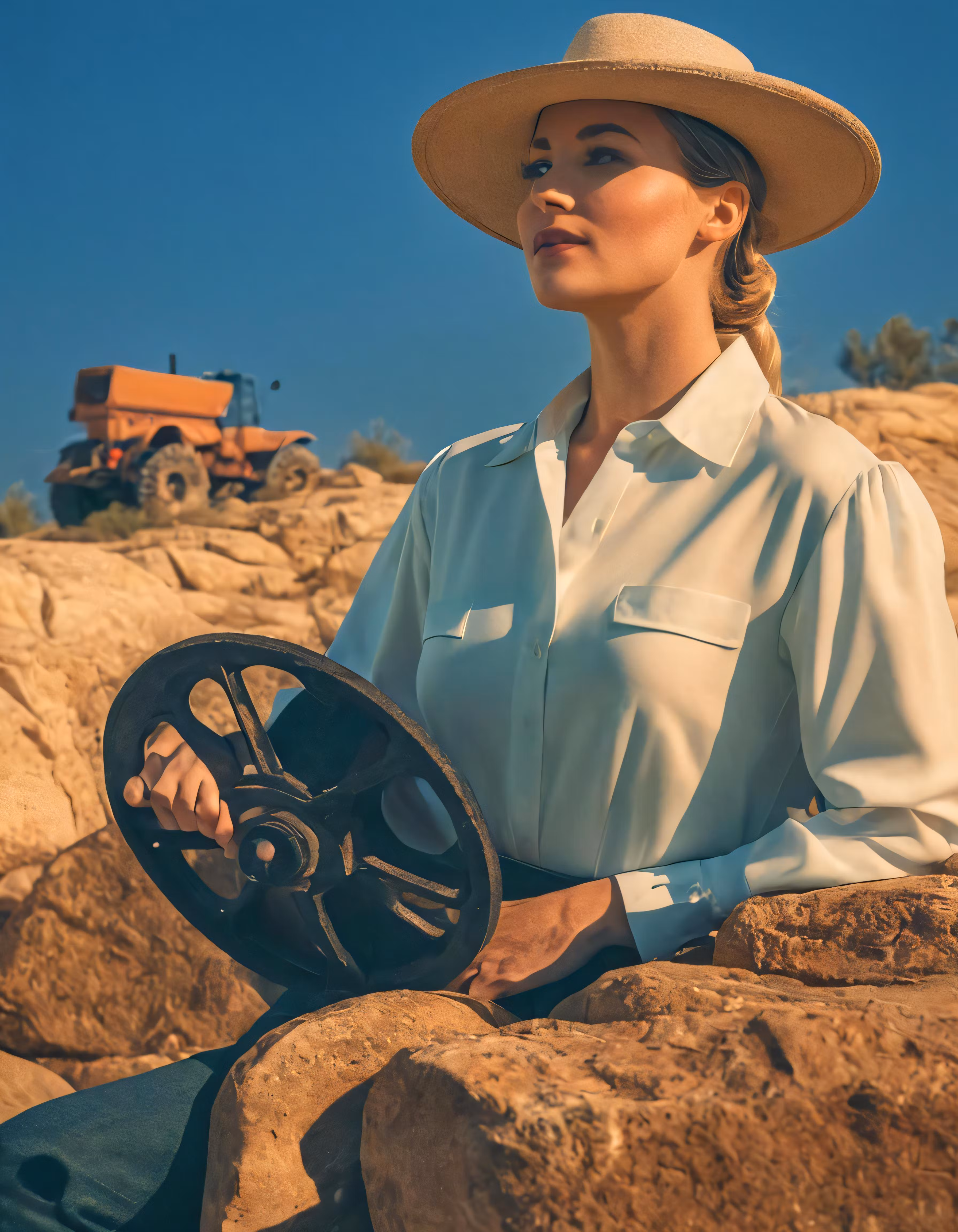 High resolution picture, free to use, a woman sitting on top of a rock formation