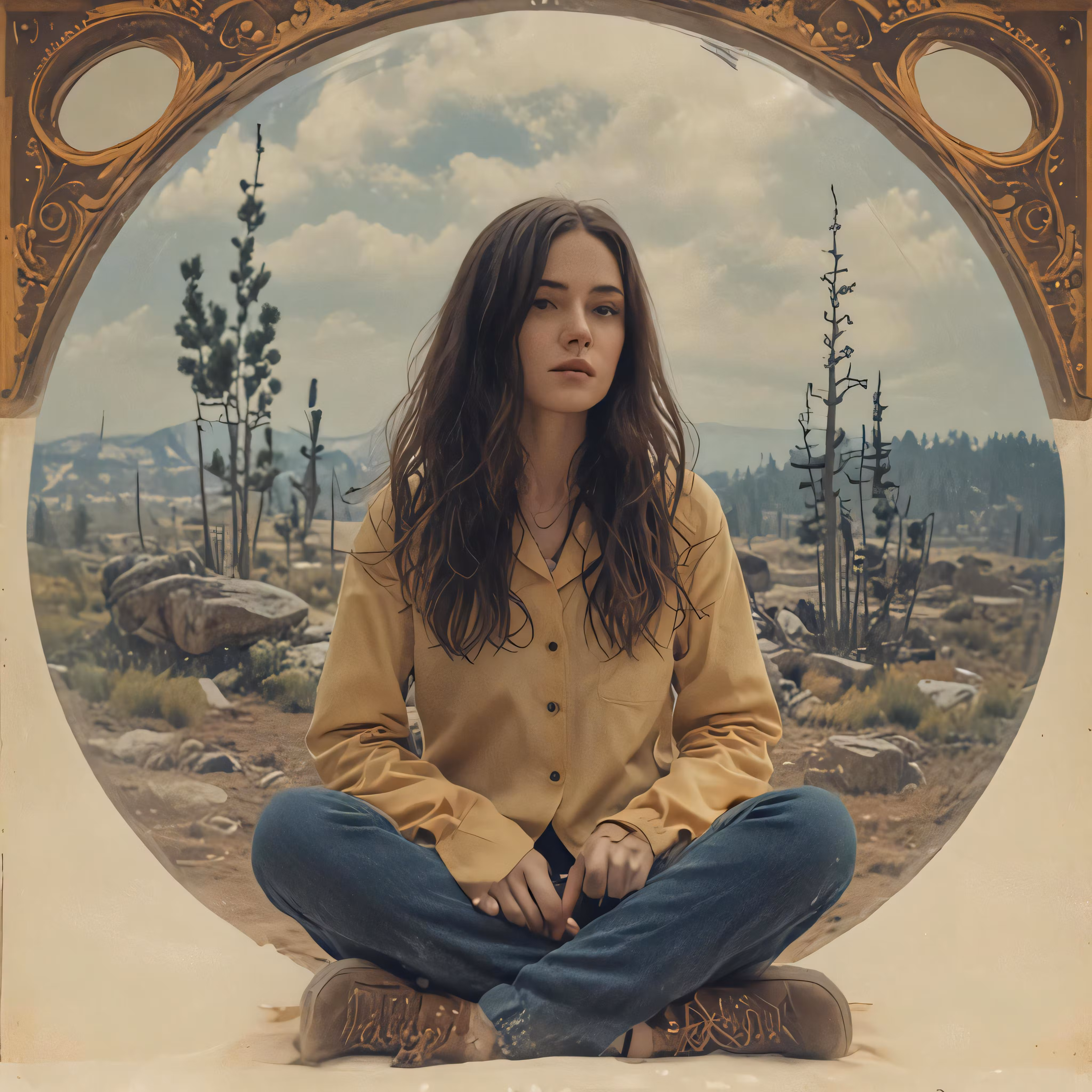 High resolution picture, free to use, a woman sitting on top of a rock with her hands in her pockets