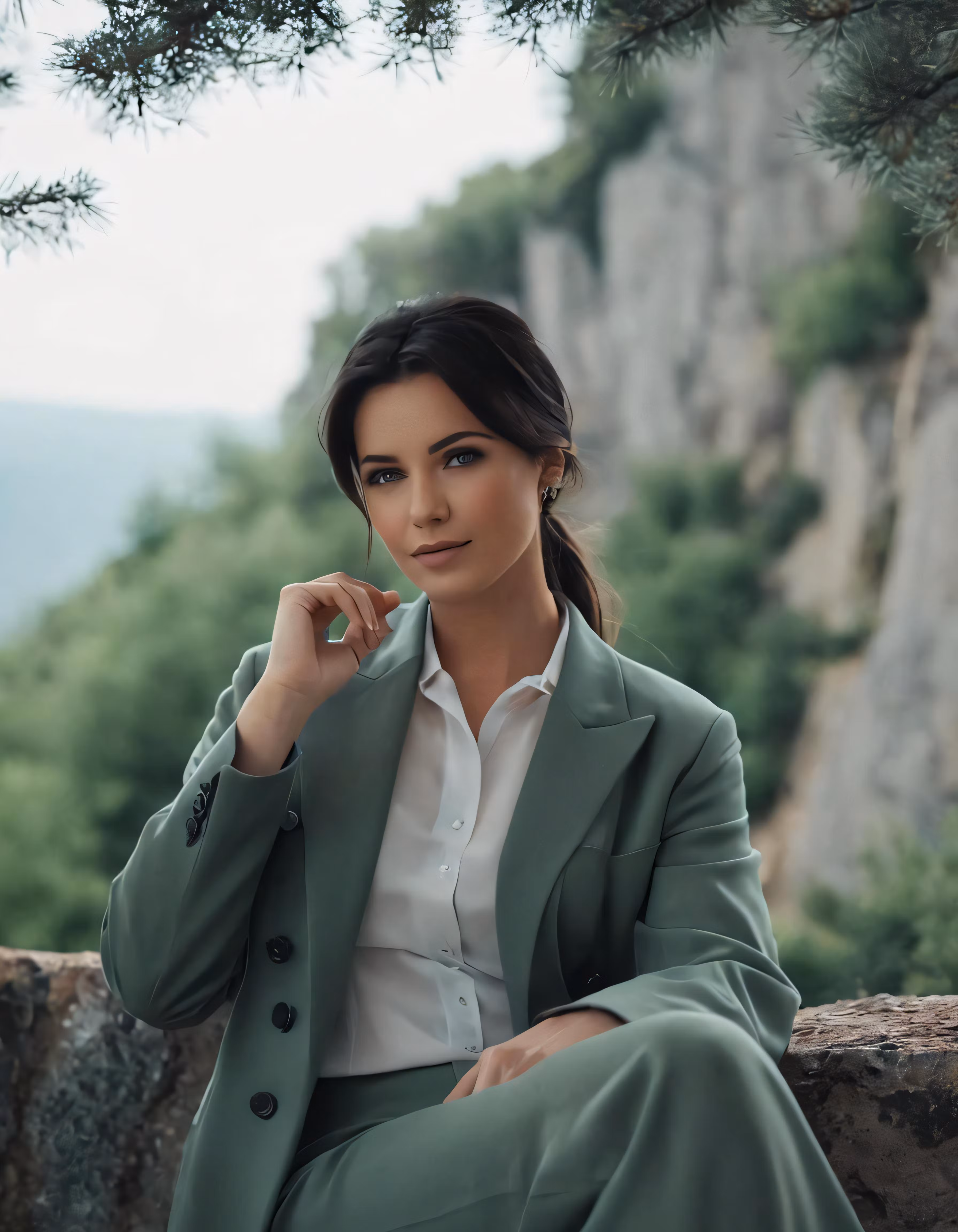 High resolution picture, free to use, a woman sitting on top of a tree next to a rocky cliff