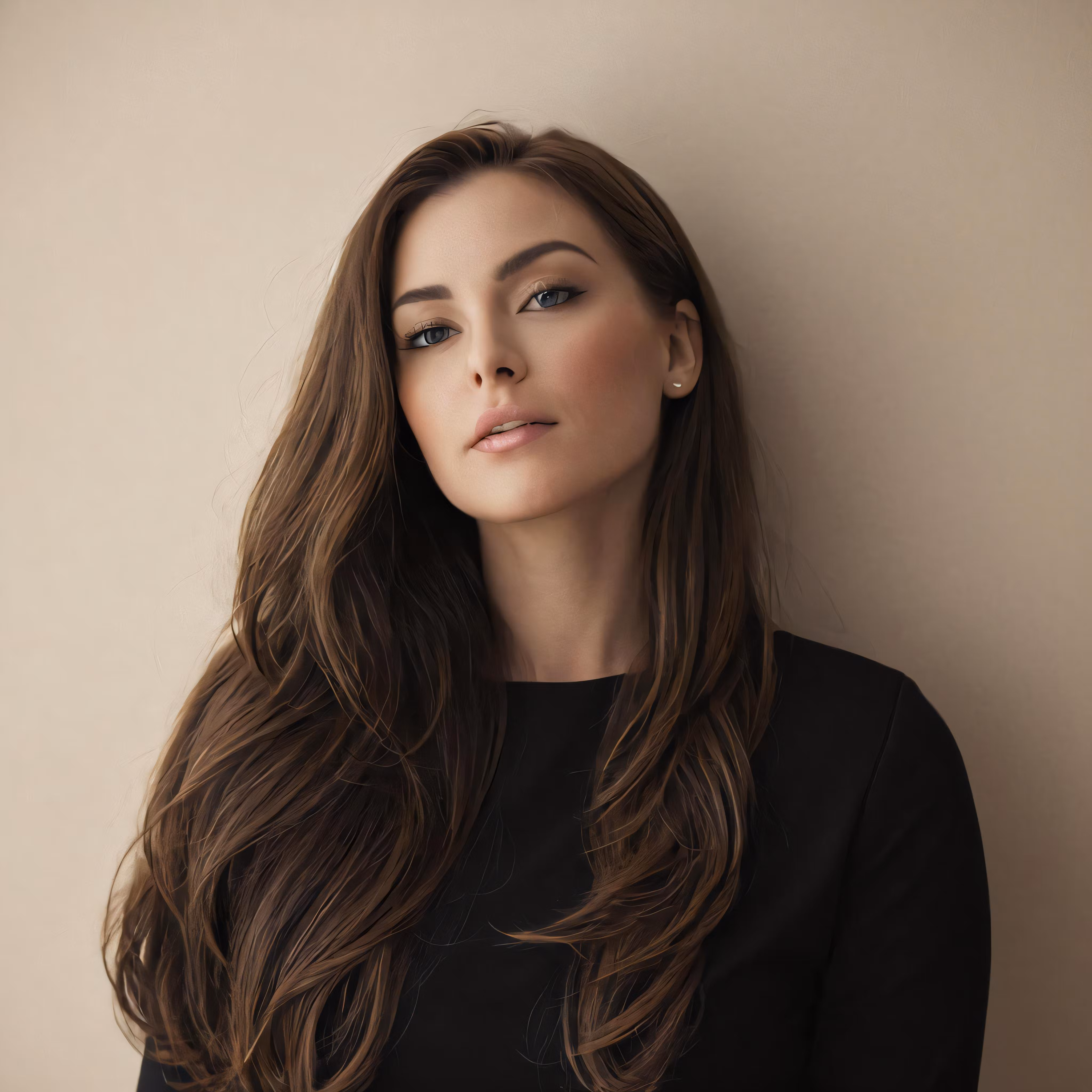 High resolution picture, free to use, a woman standing against a wall with her face to the right