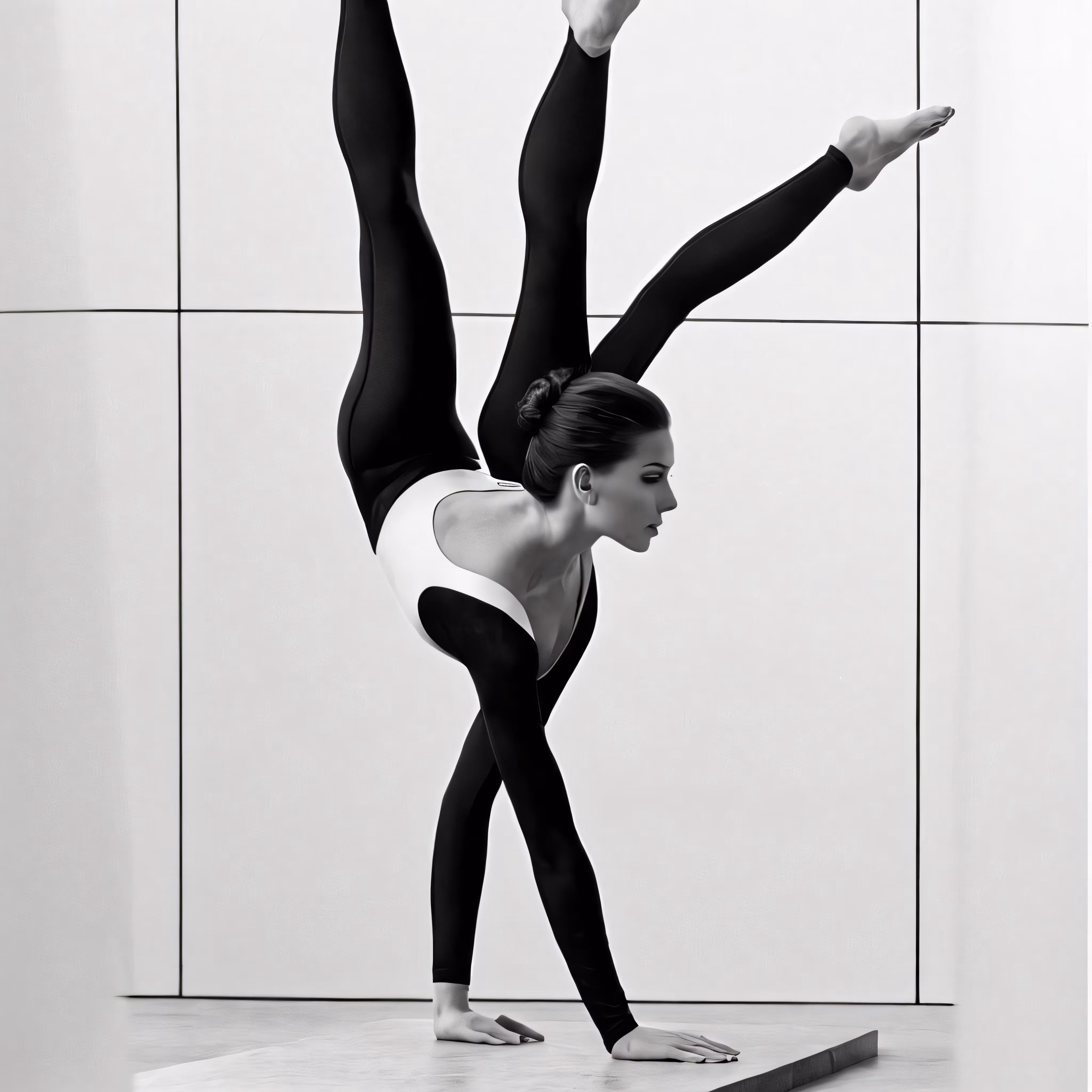 High resolution picture, free to use, a woman standing in a yoga position on top of a white platform