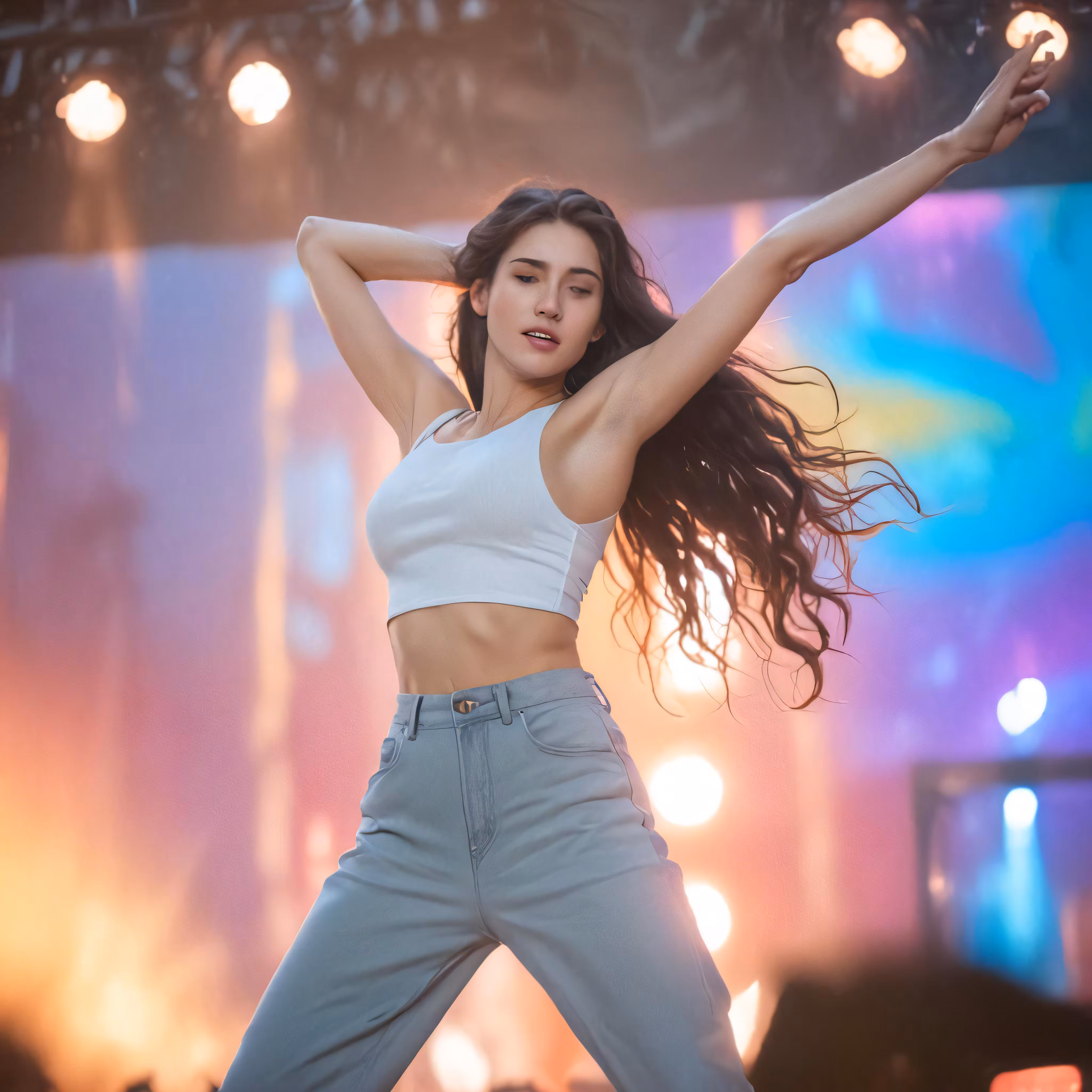 High resolution picture, free to use, a woman standing in front of a crowd holding her arms out