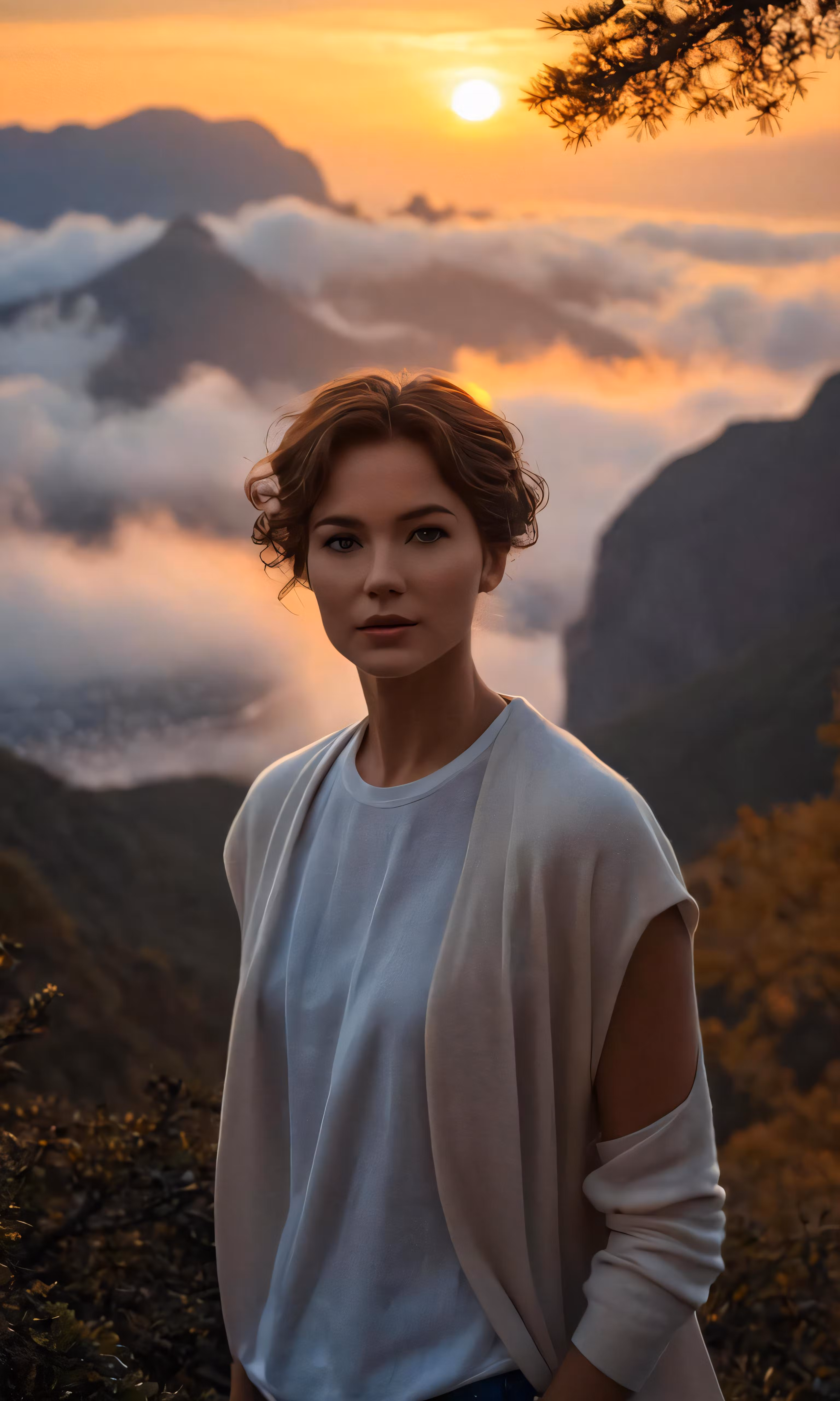 High resolution picture, free to use, a woman standing in front of the mountains with a view of clouds
