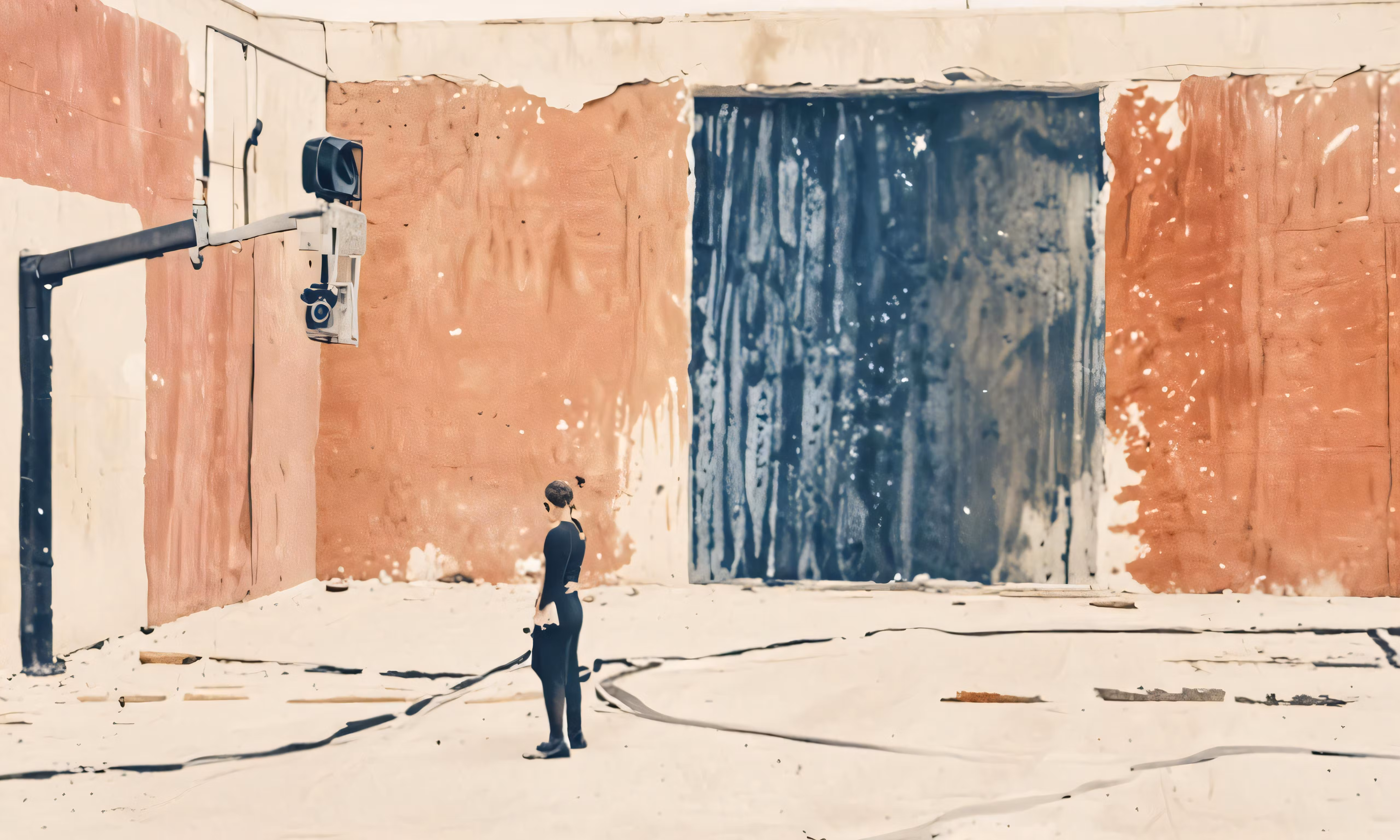 High resolution picture, free to use, a woman standing on a street corner next to a tall building