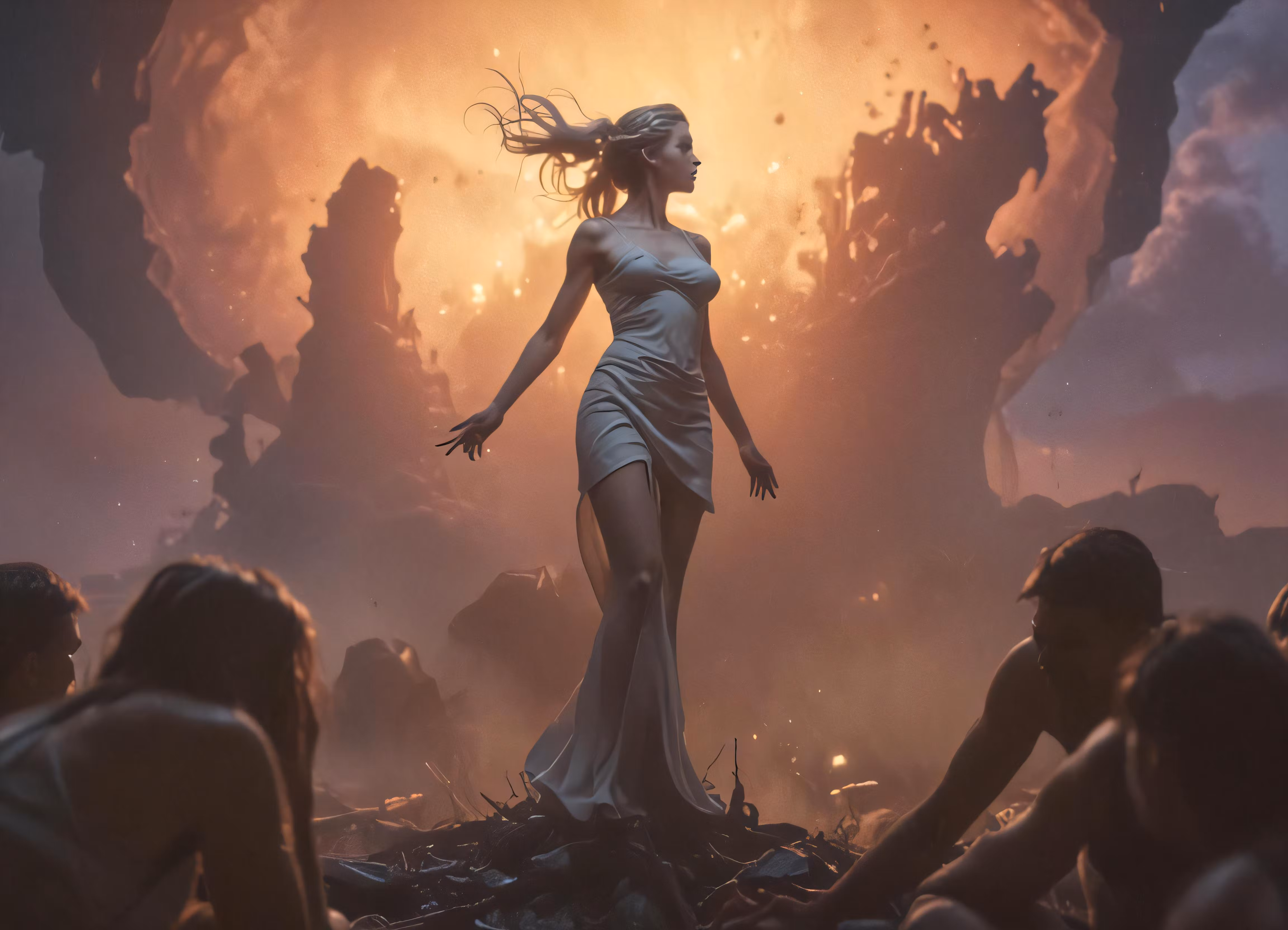 High resolution picture, free to use, a woman stands amongst the crowd in this artwork