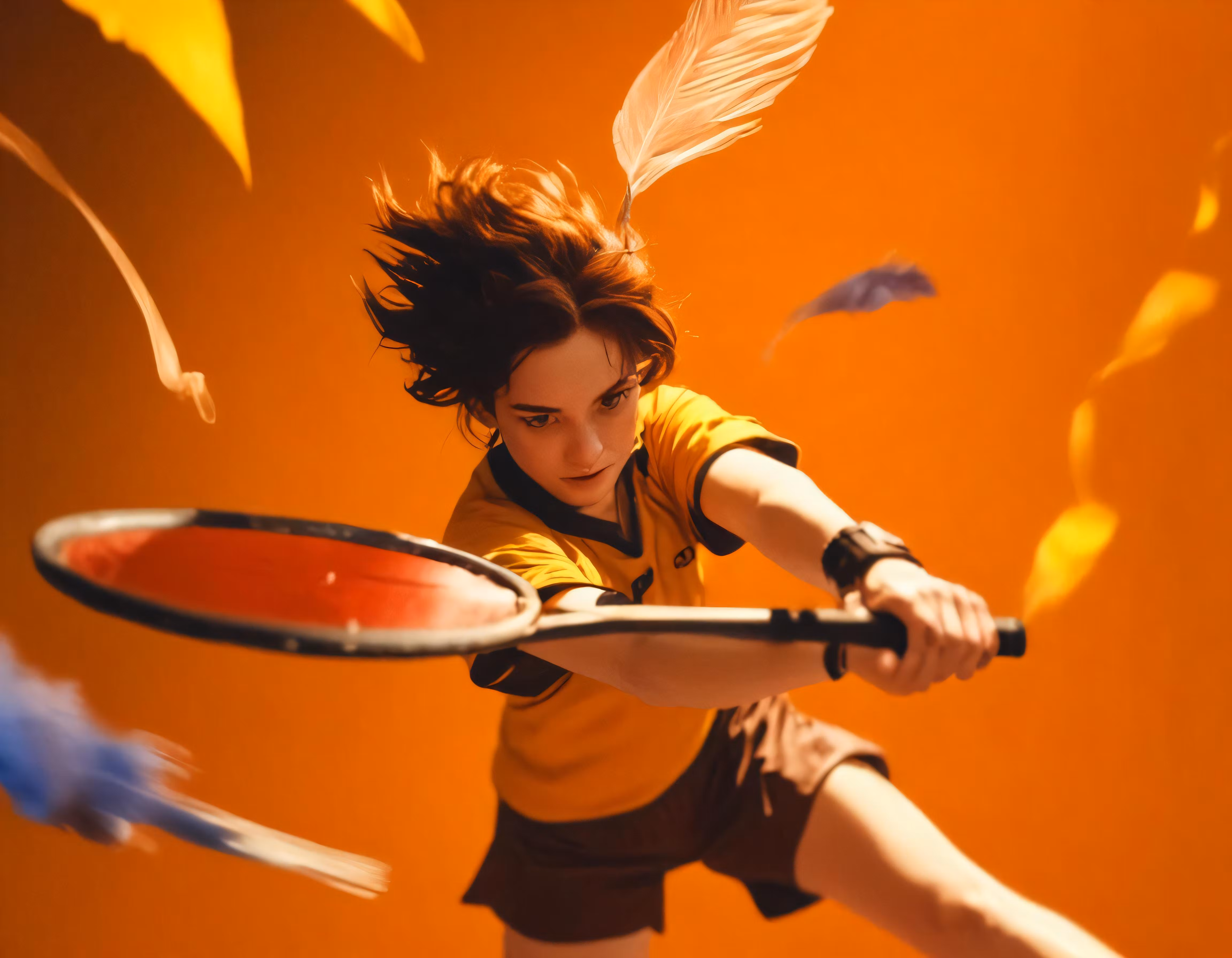 High resolution picture, free to use, a woman swinging a plastic racquet next to a red frisbee