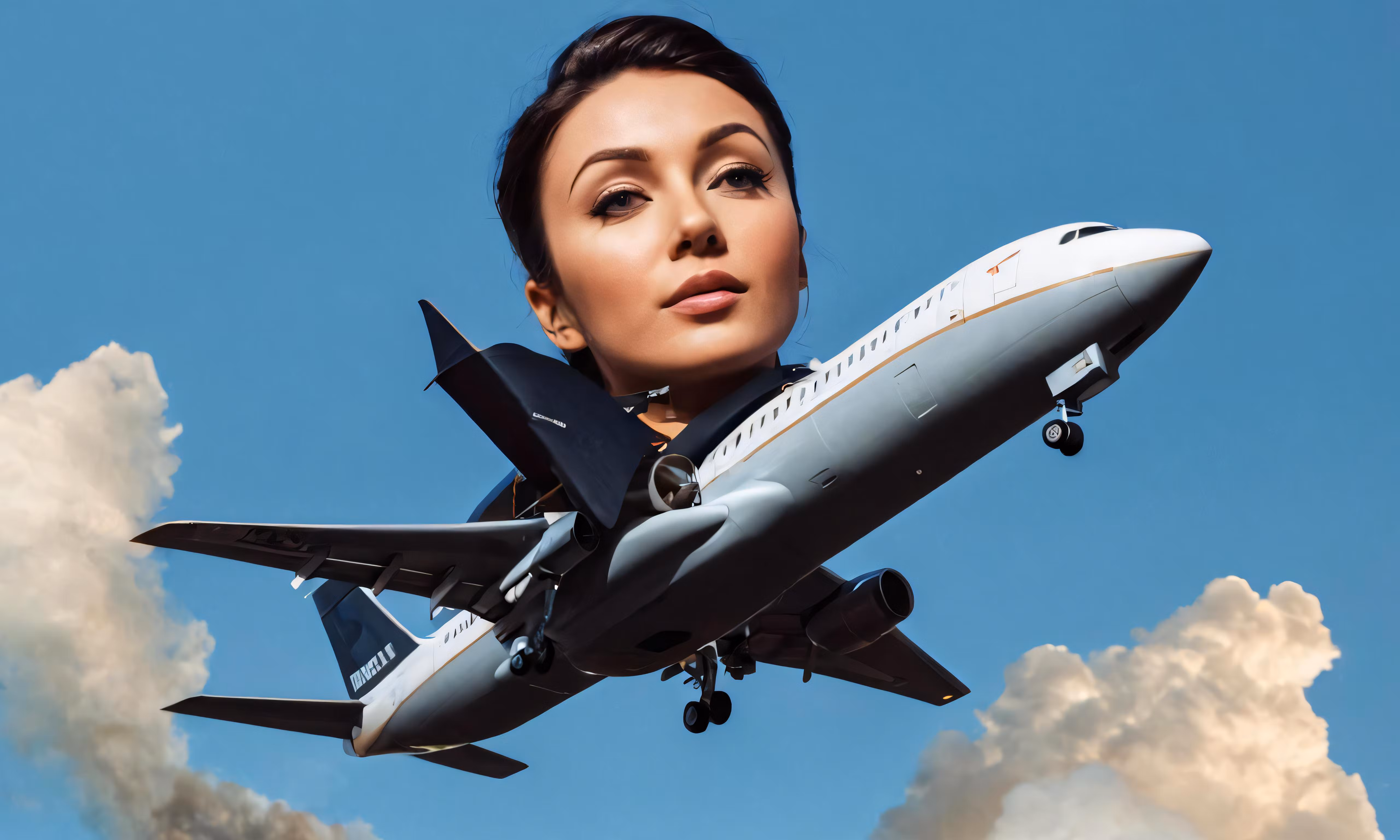 High resolution picture, free to use, a woman taking pictures of an airplane flying through the air