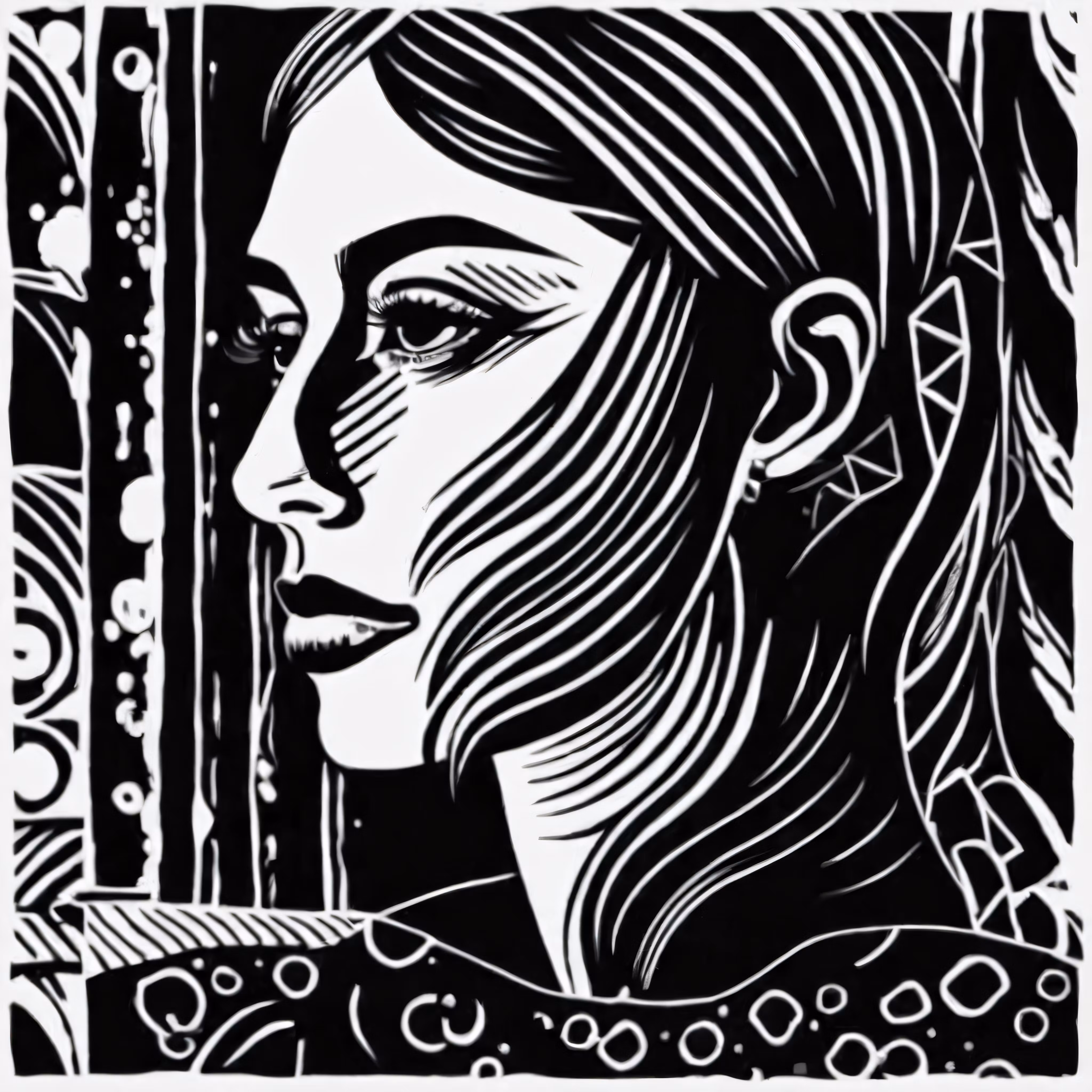High resolution picture, free to use, a woman that has long hair and a black and white background