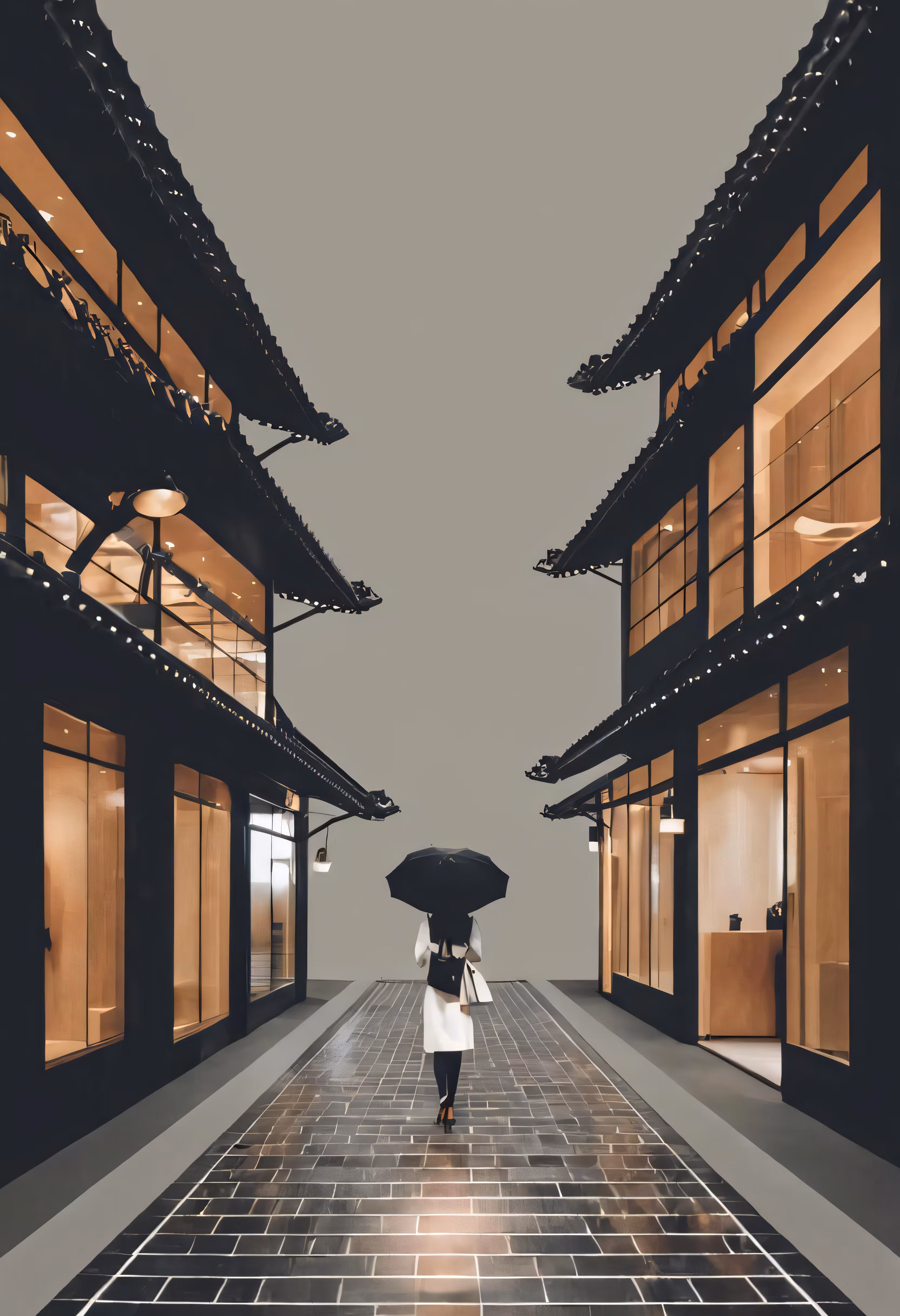 High resolution picture, free to use, a woman walking down a rain soaked street holding an umbrella